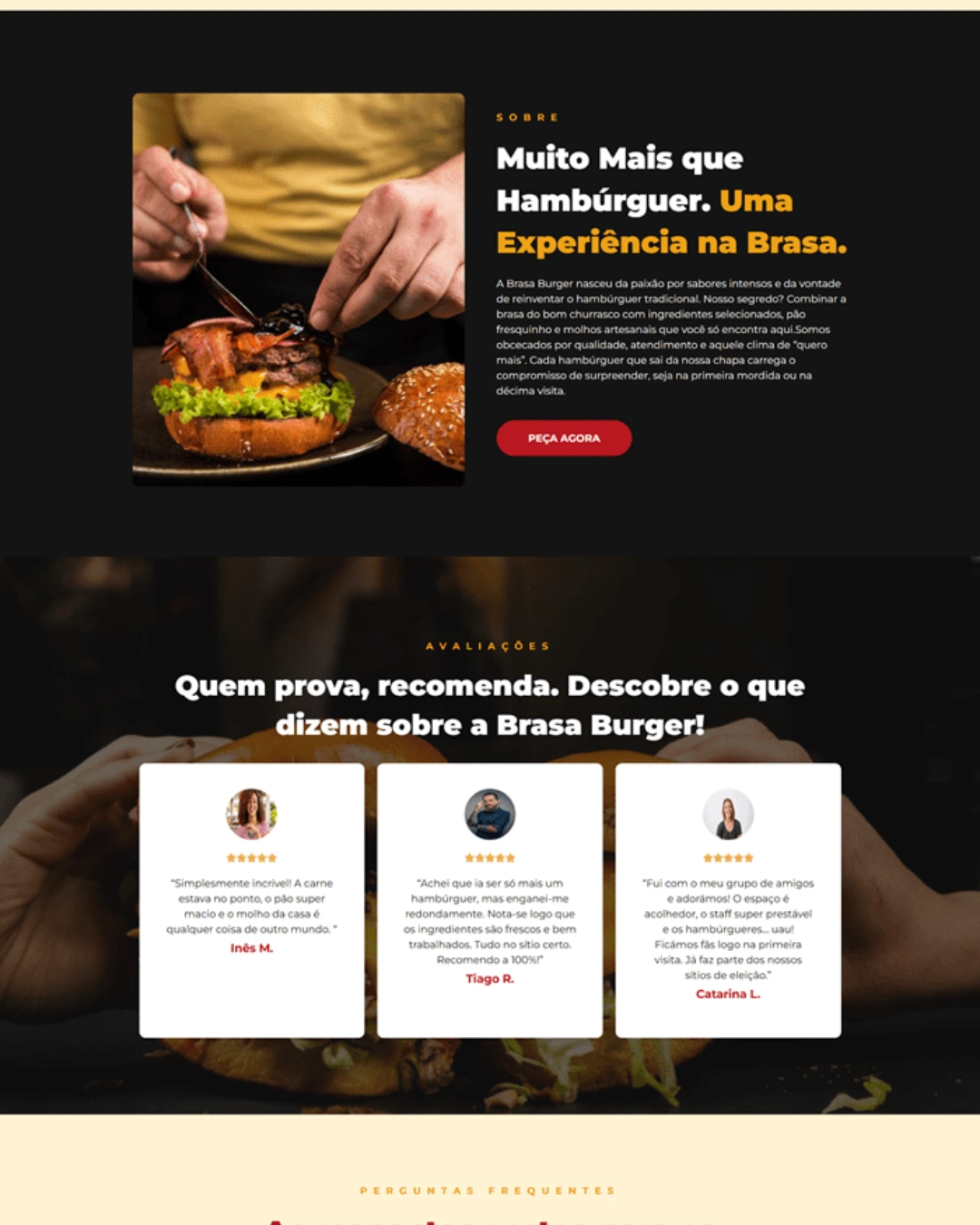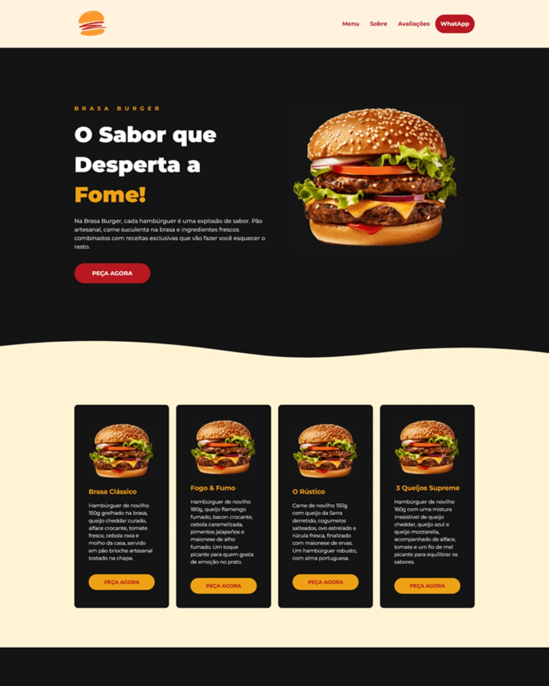 One-page burger restaurant website with mouth-watering design, clear menu highlights, and easy orders crafted to attract and delight customers.