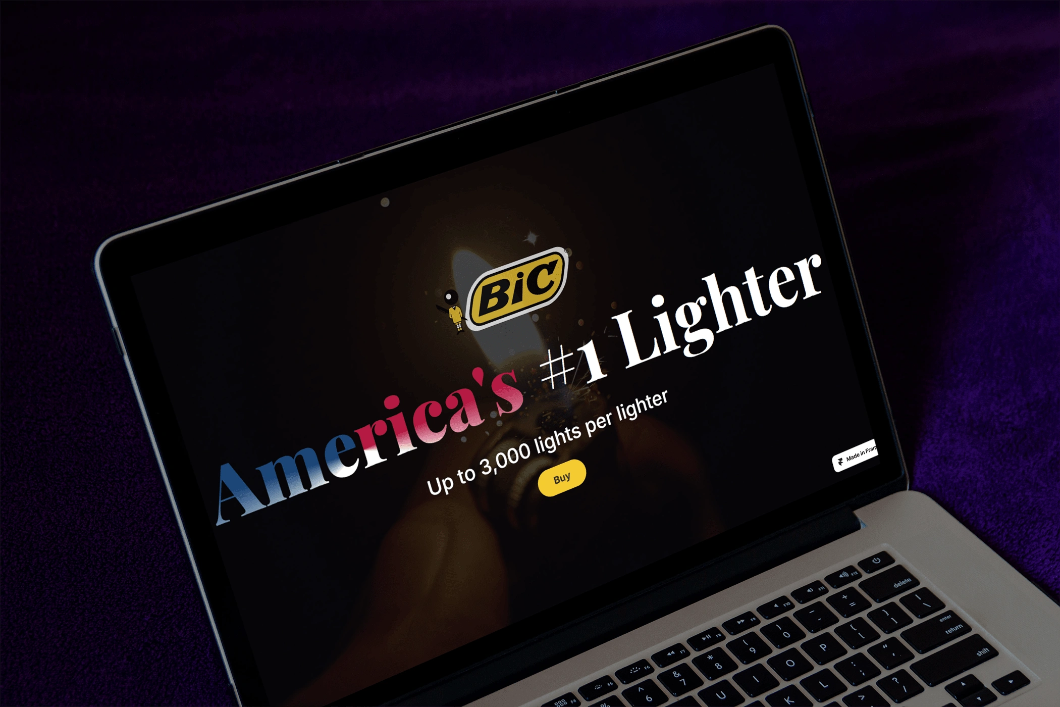 Product page for the iconic BIC Classic Lighter. This design highlights features with a clean layout, smooth interactions and animations. Check it out!