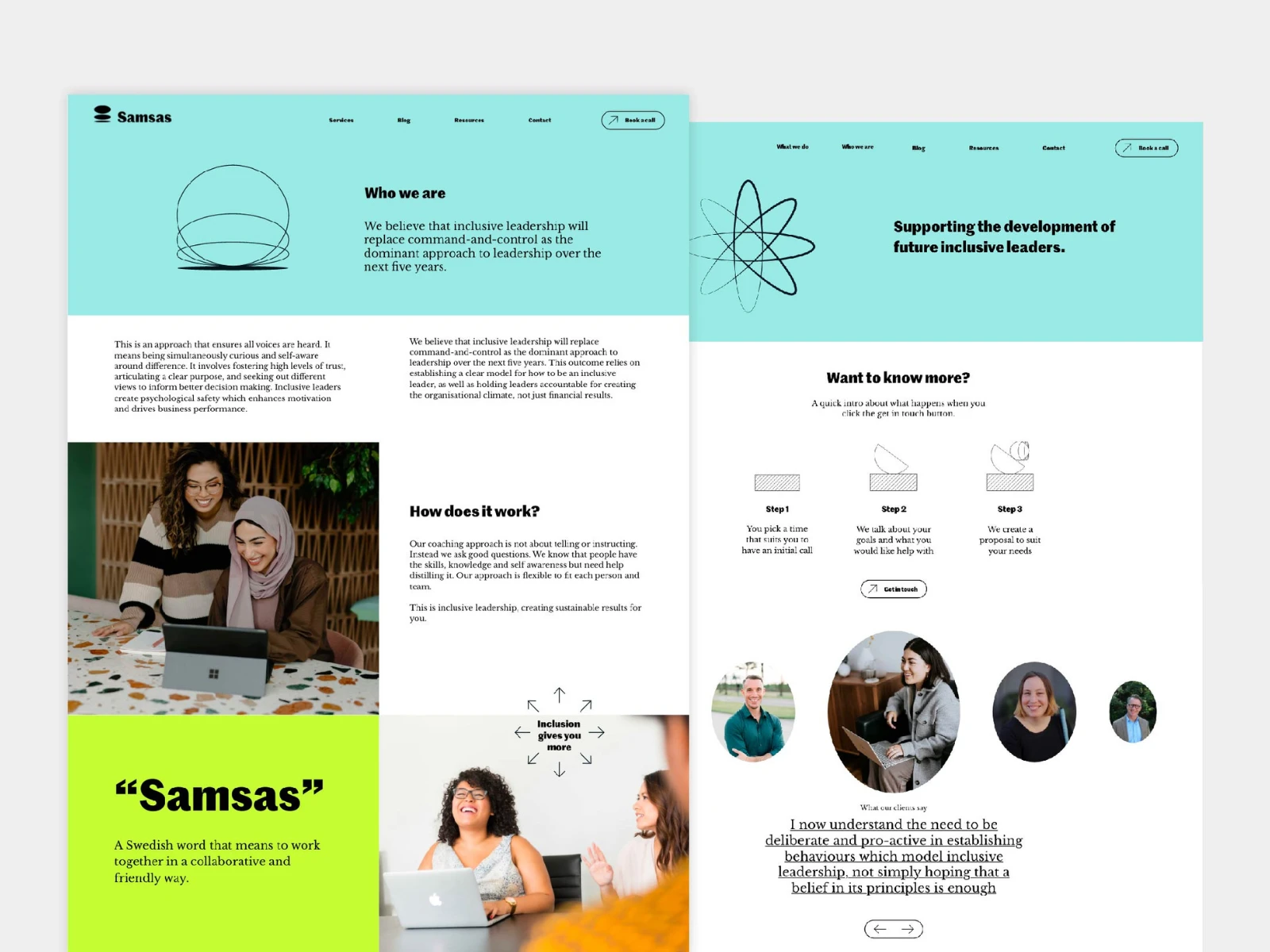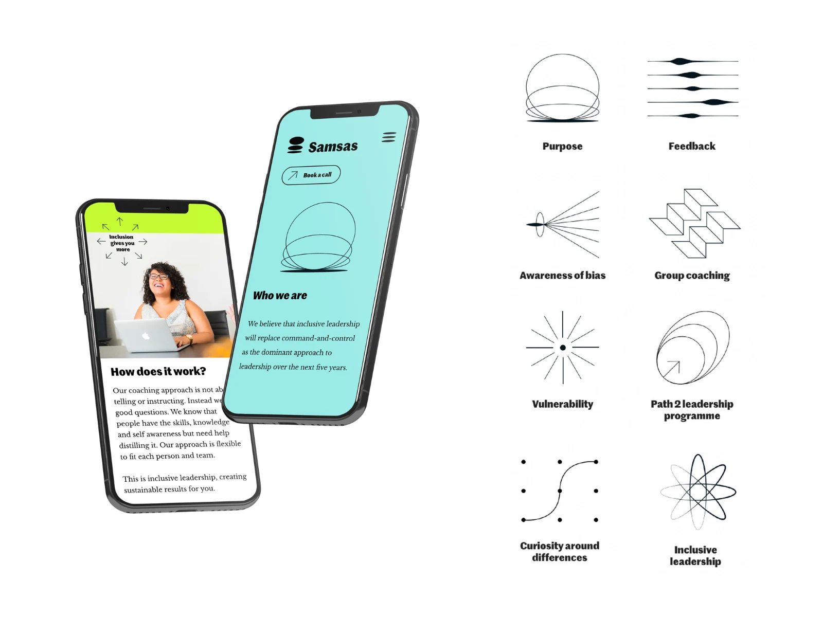 We started by coming up with the core concept behind the brand - “Inclusion gives you more”. The research showed that most leaders and HR teams knew that inclusion was an important box to tick but they saw it as an expensive and tedious process when in reality, it brings innovation and more employee retention. The logo reflects the concept of growth and the icons play with the idea of widening your perspectives and directionality. It was important that the overall design felt really clean and professional and had injections of bold colour and carefully selected photography to feel more personal. Together, we created the company name, brand identity, templates and website design.