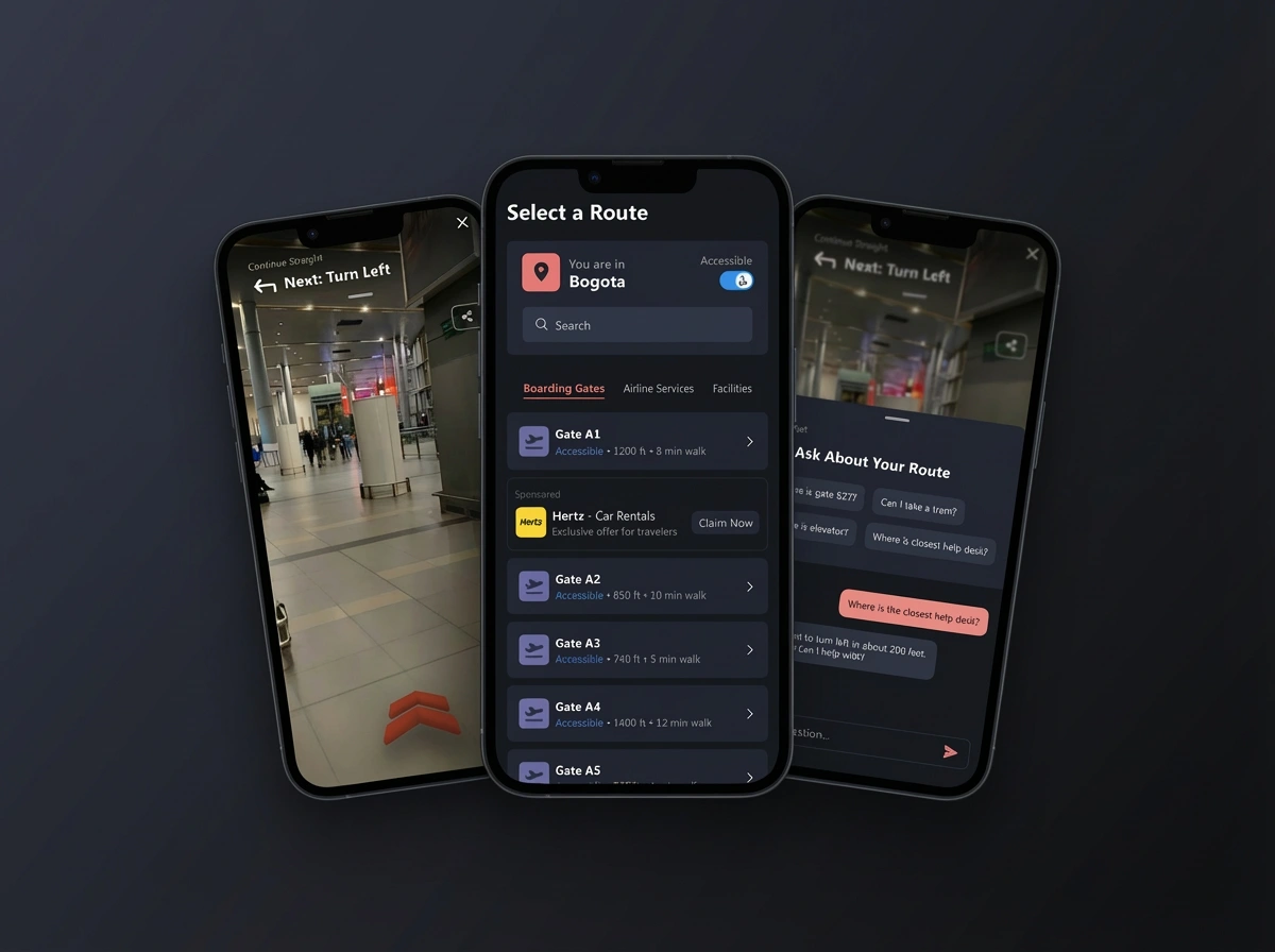 Airports are chaotic environments. Travelers rush, signage varies, and outdated maps don’t reflect real-world obstacles like construction or closed pathways. RouteMe.AI wanted to solve this by allowing staff to record accurate routes, overlay AR guidance, and provide step-by-step assistance.
