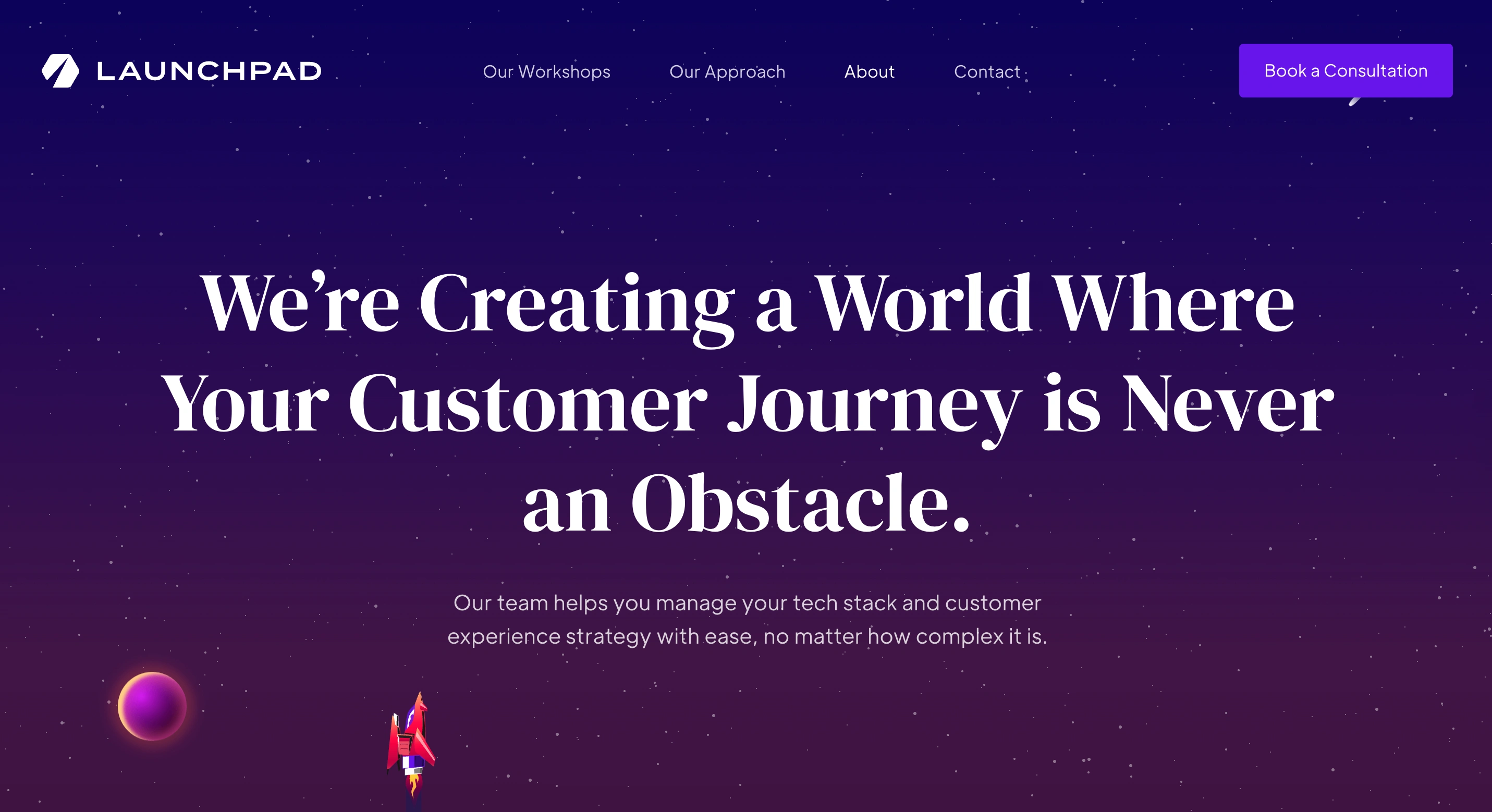 Launchpad needed a brand that communicated both expertise and approachability, serious consulting wrapped in creative expression. I developed a space-themed visual identity that metaphorically represents their mission: helping businesses reach new heights. The illustration system, color palette, and typography work together to create a distinctive, memorable brand.
