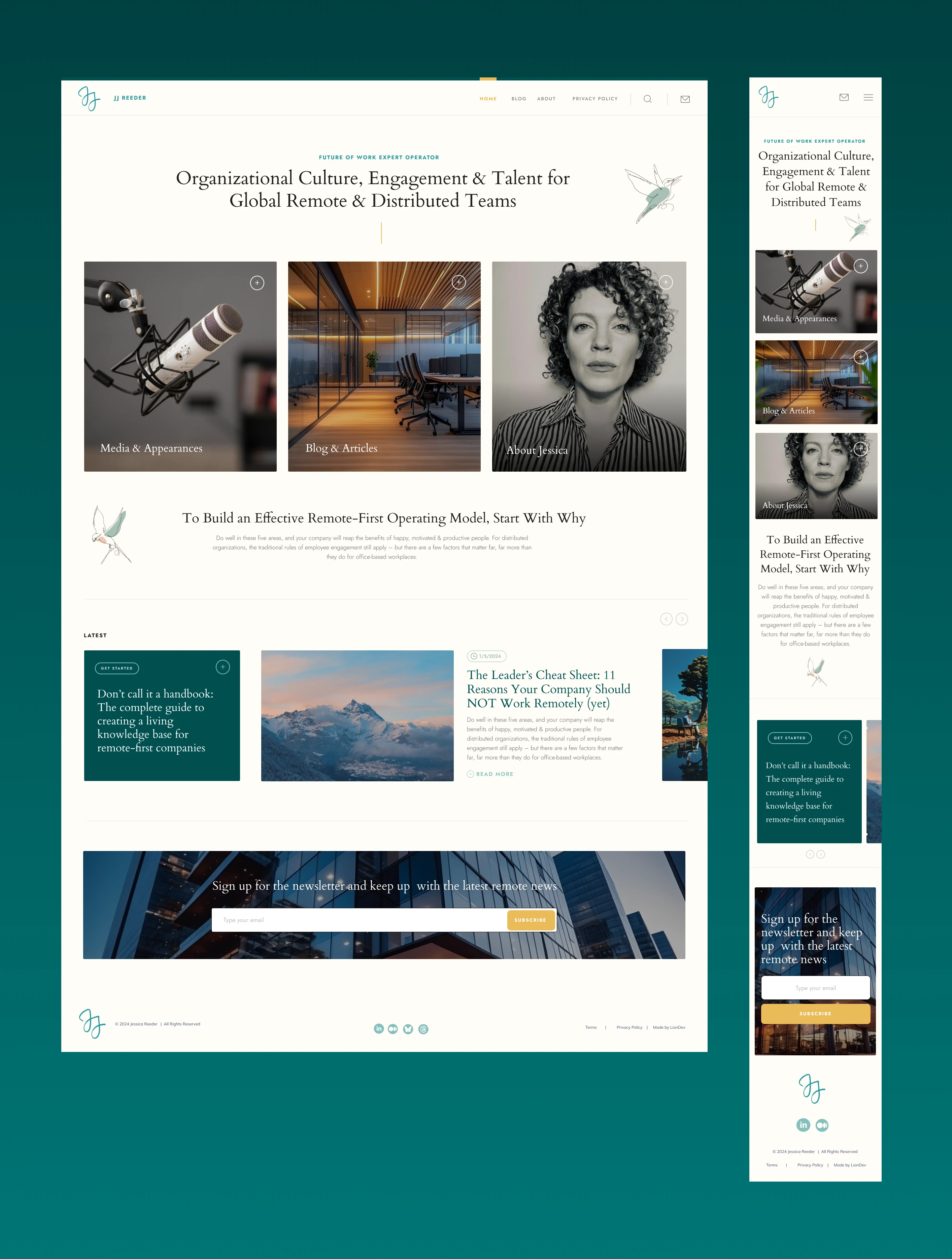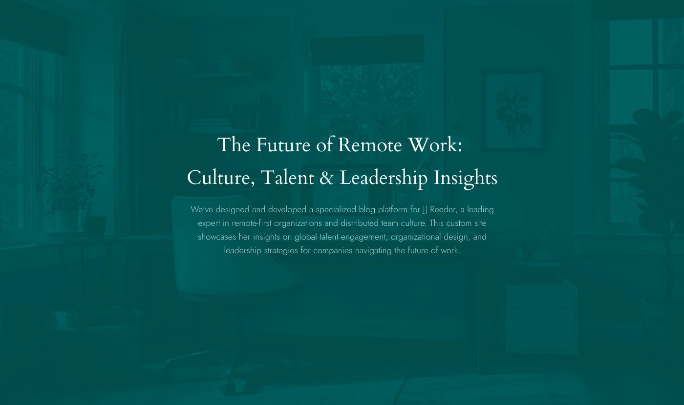 Blog design for JJ Reeder an expert on organizational culture for global, remote and distributed teams. Clean, calm, client conscious design.