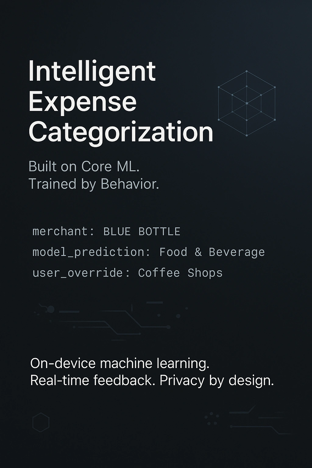 Built an on-device Core ML engine for real-time, privacy-first expense categorization with feedback-driven learning and behavior-based tagging.