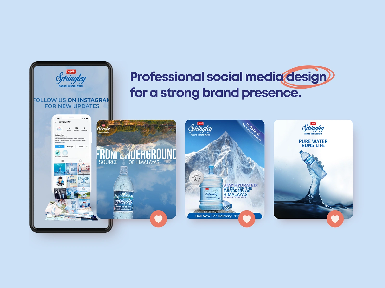 Delivered a complete set of branded social media creatives that improved visual consistency, supported marketing campaigns, and positioned Springley Water as a fresh, health-focused consumer brand.
