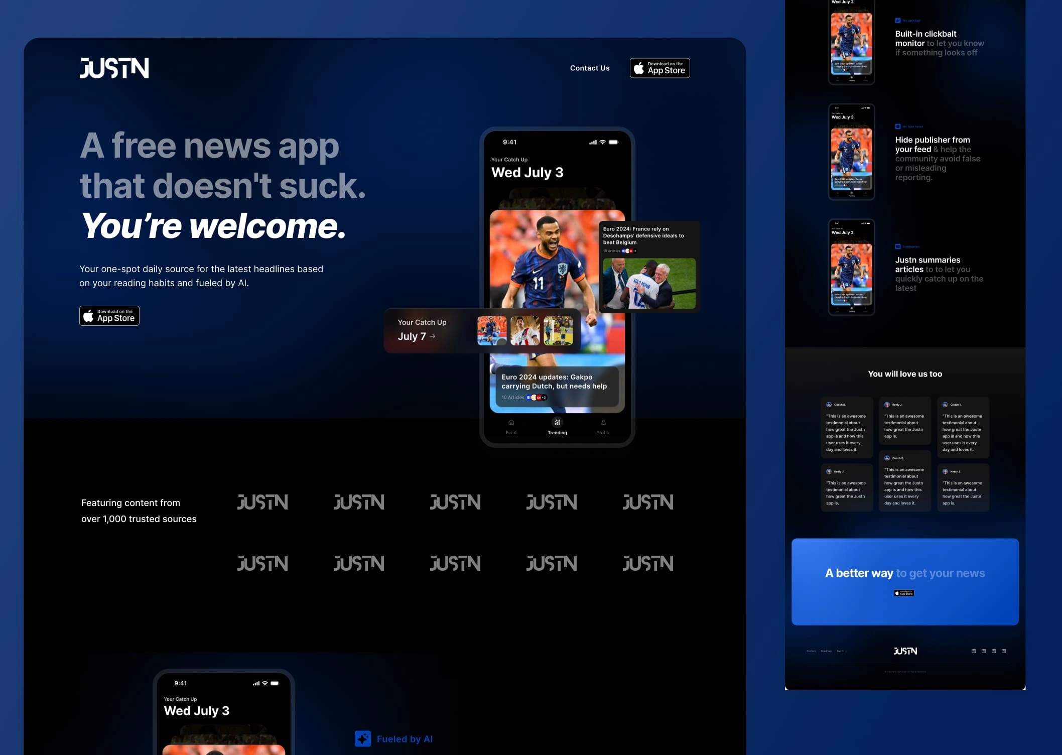 Worked with the co-founders of the Justn app to create the main flows for the iOS app as well as landing page design to better market their product.