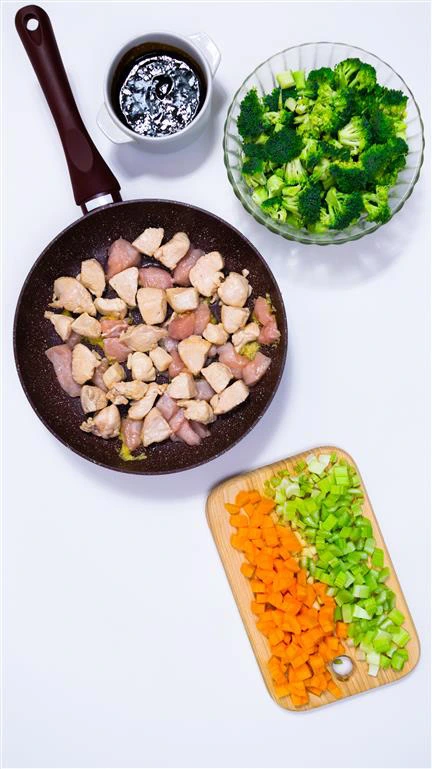Video recipe video made to order by the client. Recipe for stir fry with vegetables and brown rice. Stop motion animation.