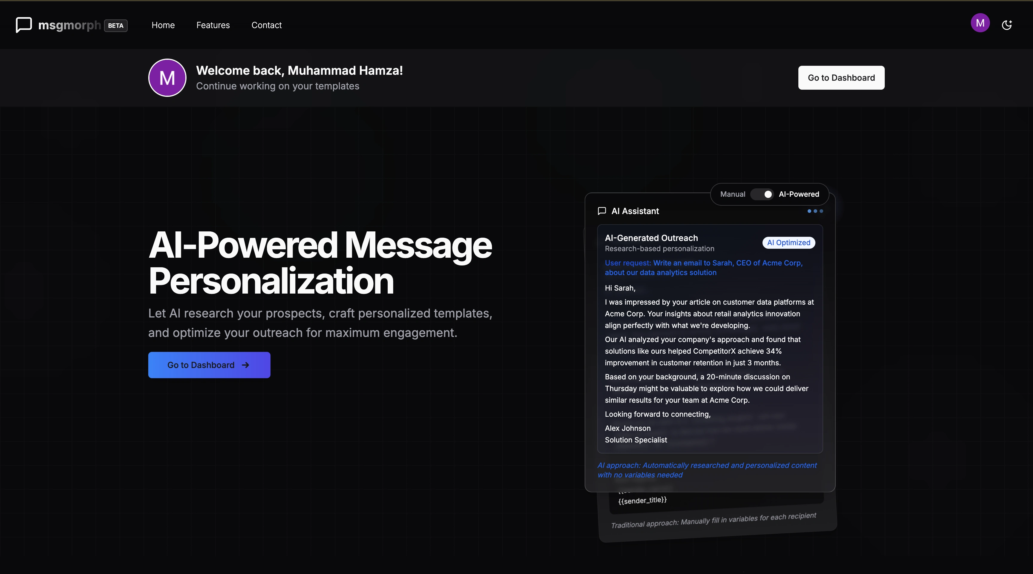 Beyond text generation, MsgMorph focuses on automation and scalability, making it suitable for applications such as outbound campaigns, customer engagement, and adaptive content generation. Its architecture is designed to plug seamlessly into external workflows and APIs, making it a flexible foundation for AI-driven communication platforms.
