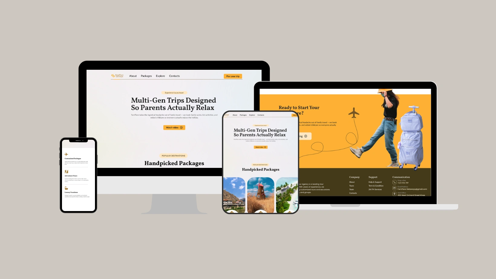 Vibrant travel & vacation booking website for families — destination showcases, trip planners, booking flows, and review sections for effortless trip planning.