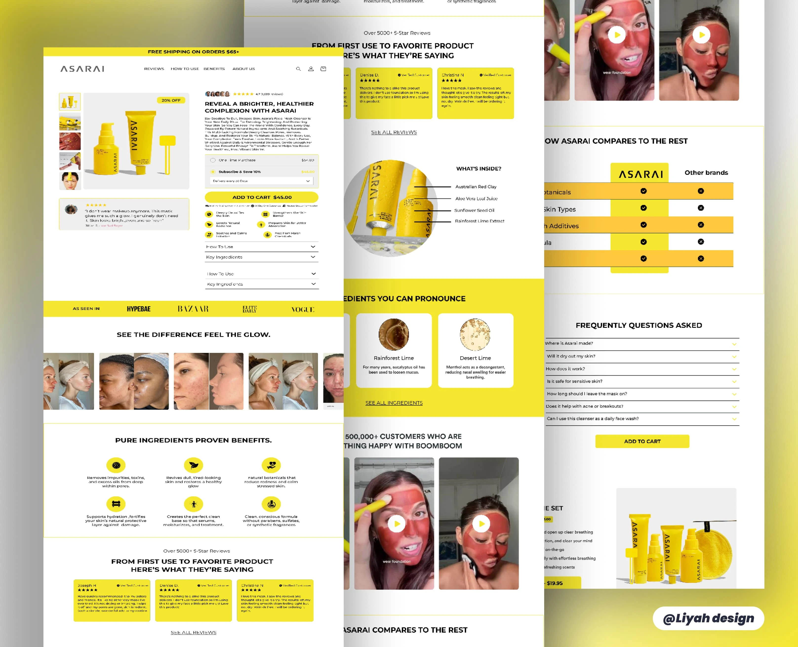 I designed a high-performing product detail page (PDP) for Asarai’s Facial Mask Cleanser, focusing on clean beauty branding, clear product benefits.