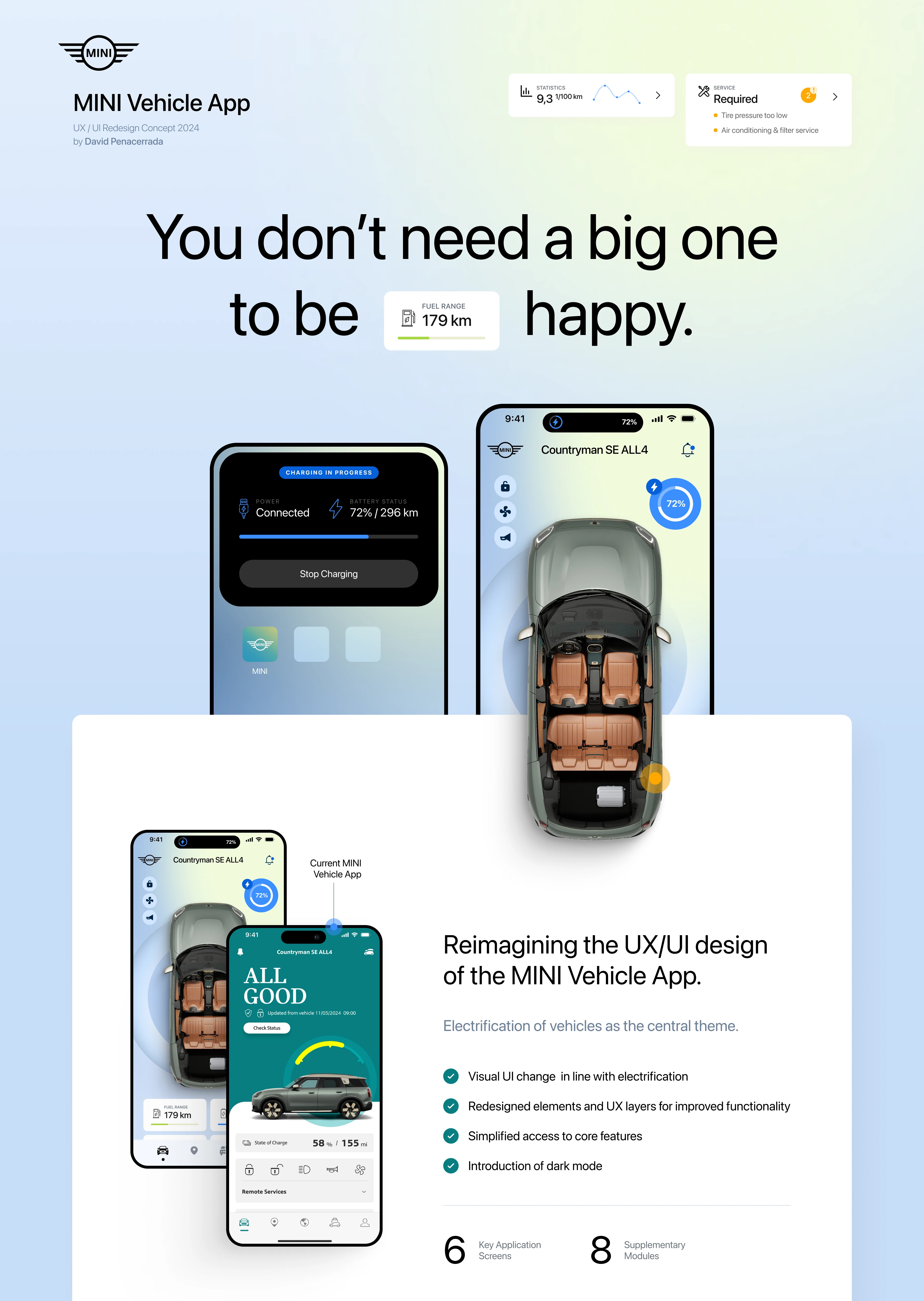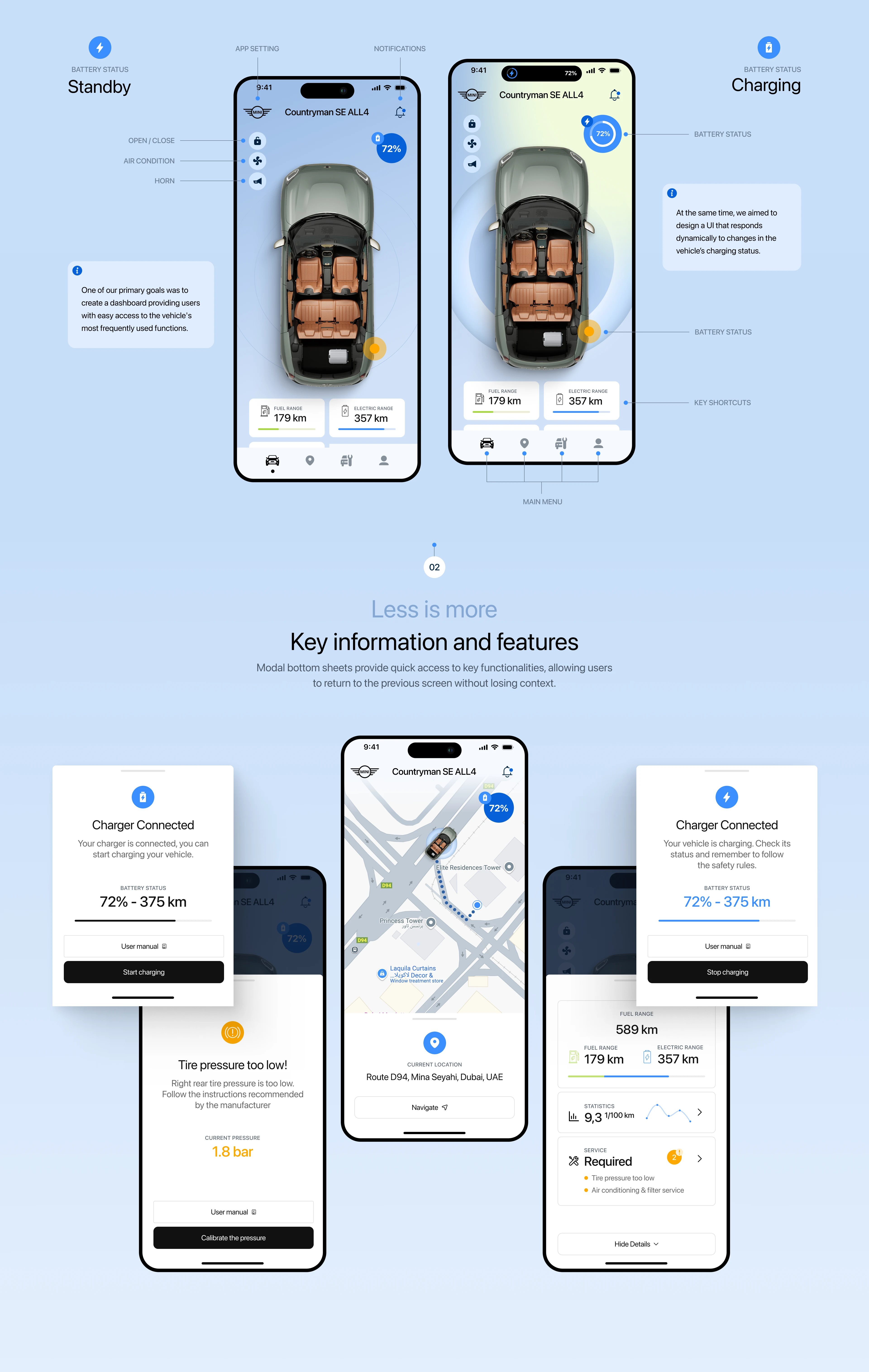 Reimagining the UX/UI design of the MINI Vehicle App for a seamless, intuitive experience with improved navigation and smart vehicle control.