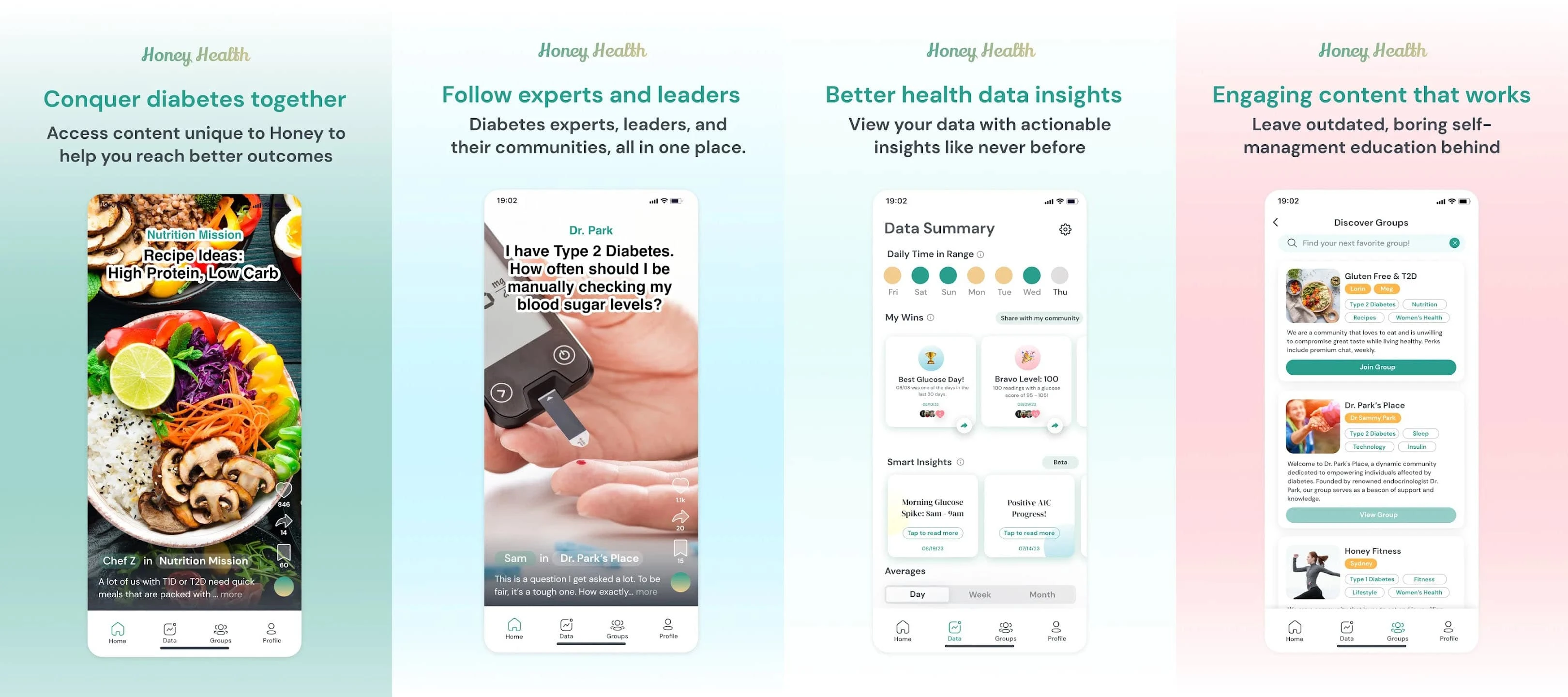 Honey Health is a comprehensive diabetes management application designed to empower users with tools for glucose tracking, personalized insights, and expert-guided care. The platform combines data-driven health monitoring with community support and educational content to help users better manage their diabetes. This patient-centered solution transforms diabetes self-management through an intuitive interface that connects users with experts, actionable insights, and supportive communities.