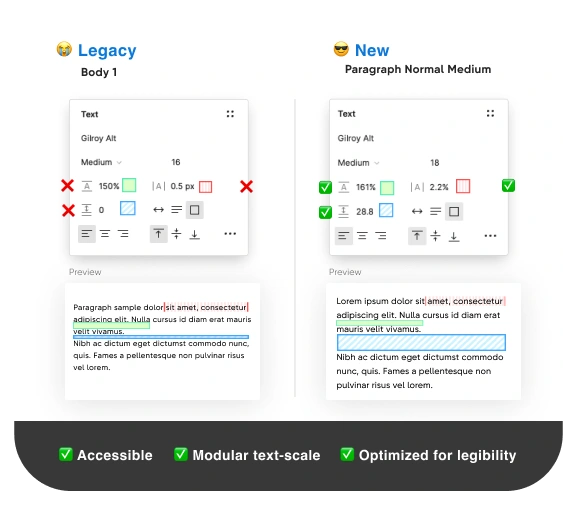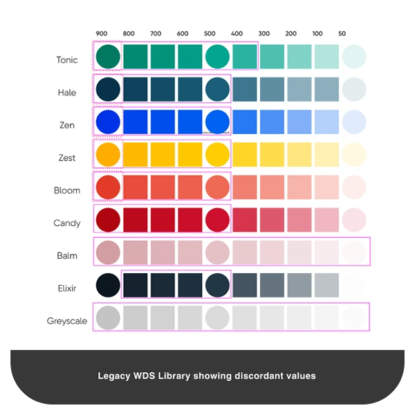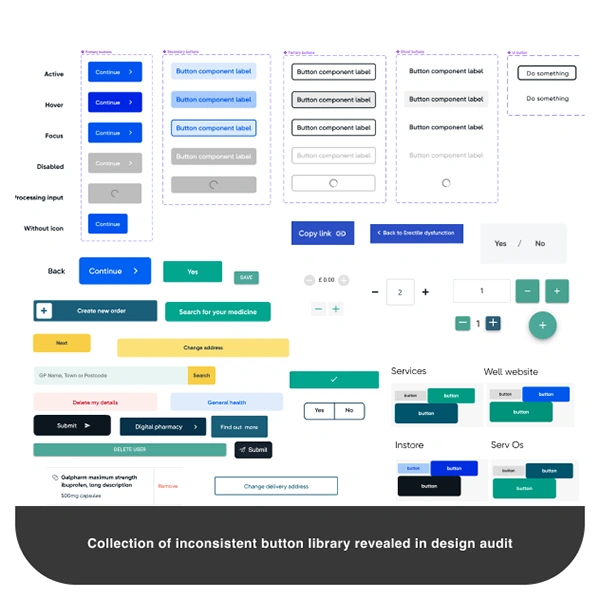 Firstly, we started auditing legacy design system libraries and filtering off the components across all the products. Thanks to Figma Analytics, we could identify the most used components and noticed a huge amount of not reusable, detached and async variants, in some cases even with inconsistent Token values. (*2 )