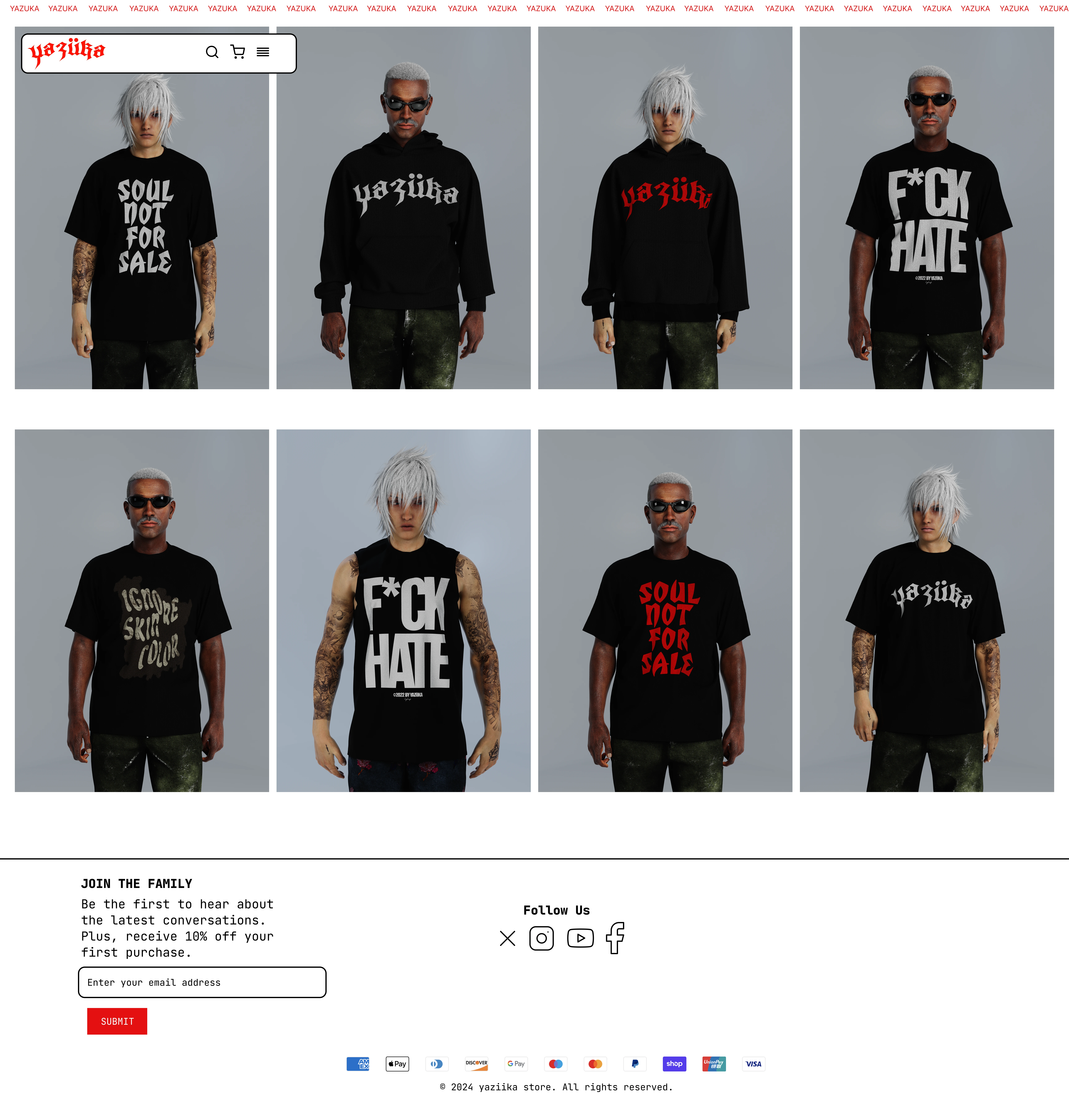 YAZUKA is a fashion-driven brand built at the intersection of digital culture and physical expression.