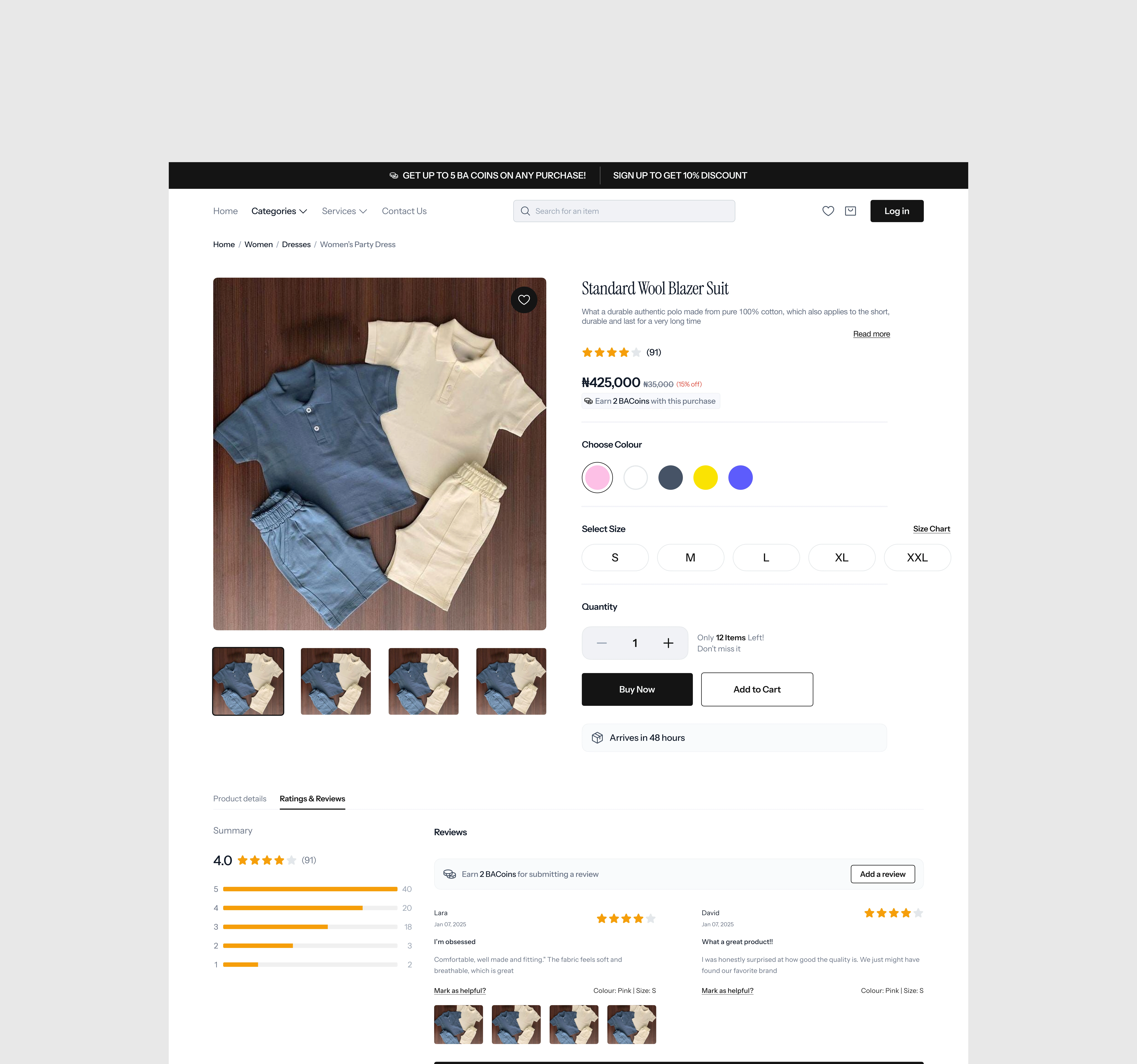 The page highlights high‑quality product images, clear pricing, descriptions, and essential attributes. Call‑to‑action buttons are made prominent, while secondary information is neatly structured to avoid clutter.