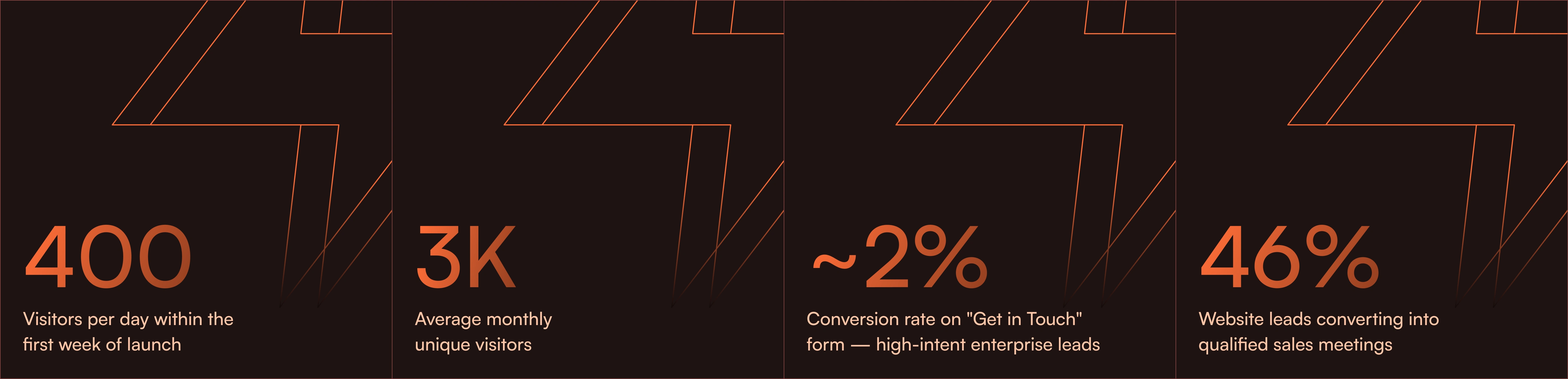 50+ qualified high intent, high-value enterprise leads generated (₹500 Cr+ annual turnover) including some of the biggest names in the industry. Directly contributing to a strong and qualified sales pipeline.