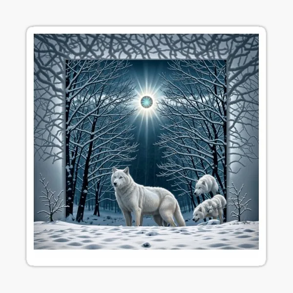 Beautiful woman with winged wolf Sticker