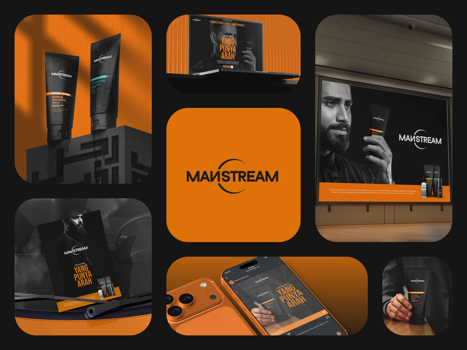 Manstream is a skincare product for man that give a strong masculinity branding and the owner wants to make this brand show slightly moslem branding because its an Indonesian product where's 87,2% of Indonesian peoples are moslem.