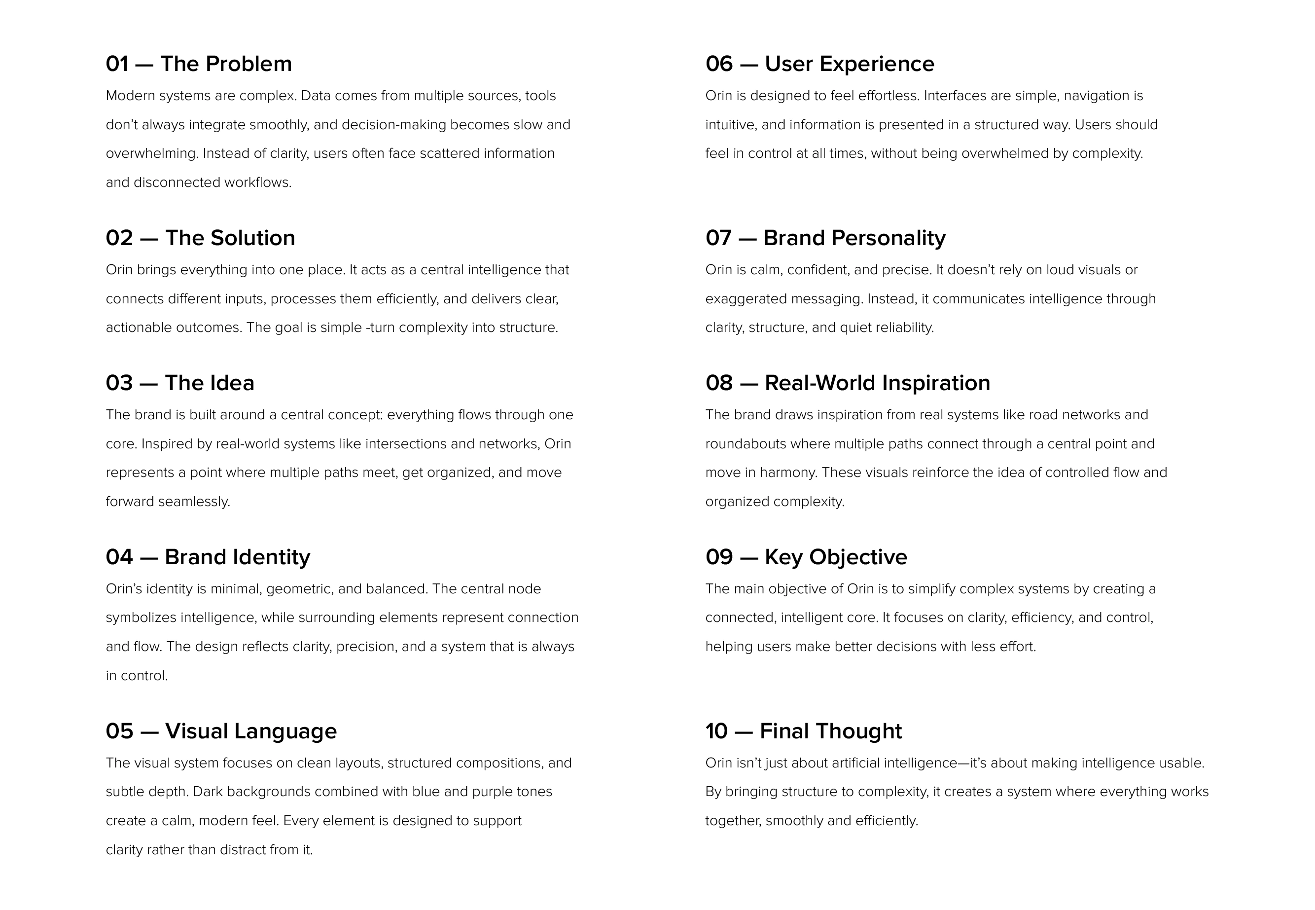 Orin is built on the idea that intelligence should feel simple. In a world full of scattered data, disconnected tools, and complex systems, Orin brings everything into one place quietly organizing, processing, and guiding decisions from a central core. It’s not just about AI power, it’s about making that power usable, structured, and clear.