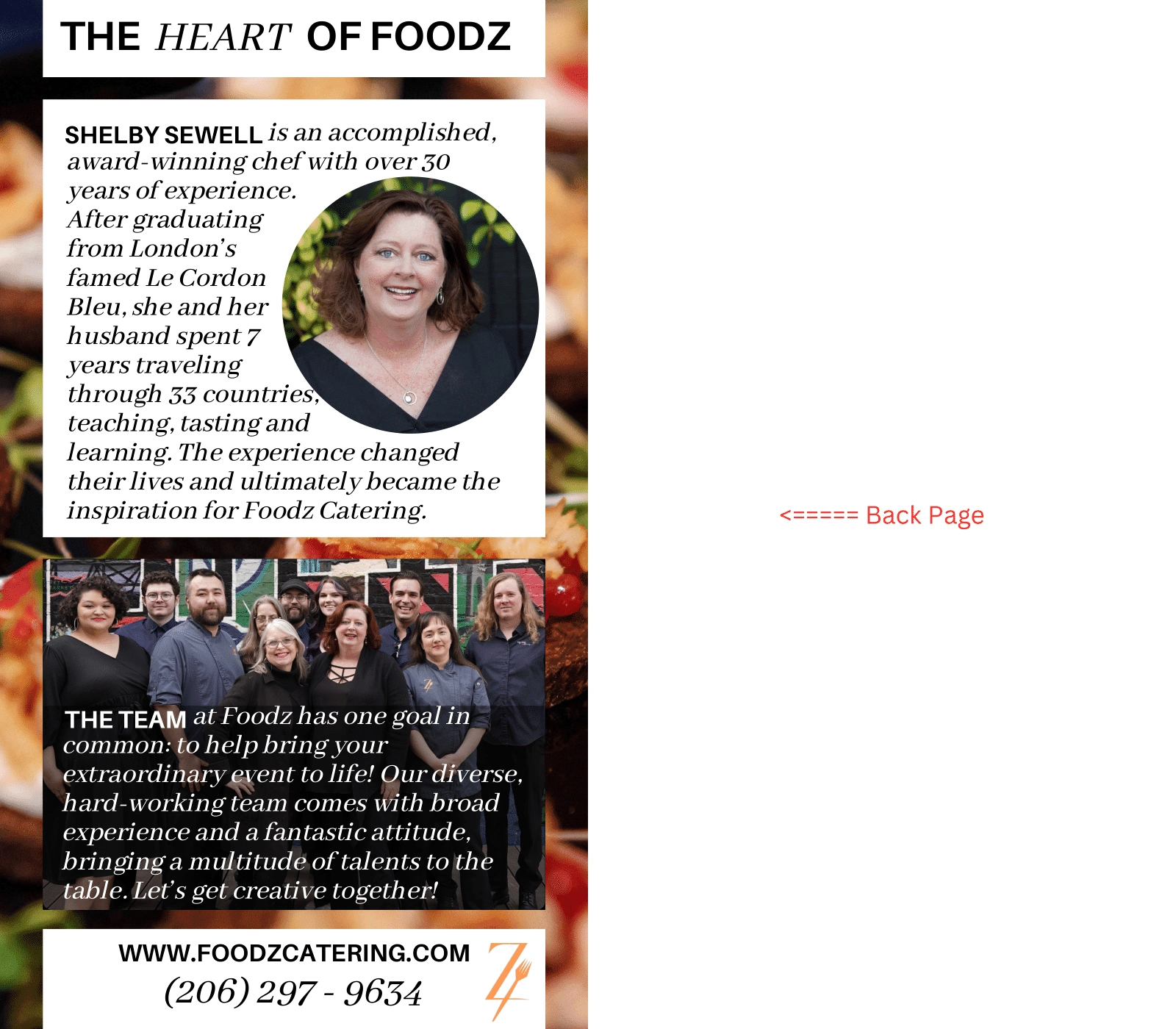Refresh the print marketing brochure with a new layout, imagery and style to attract new catering clients.