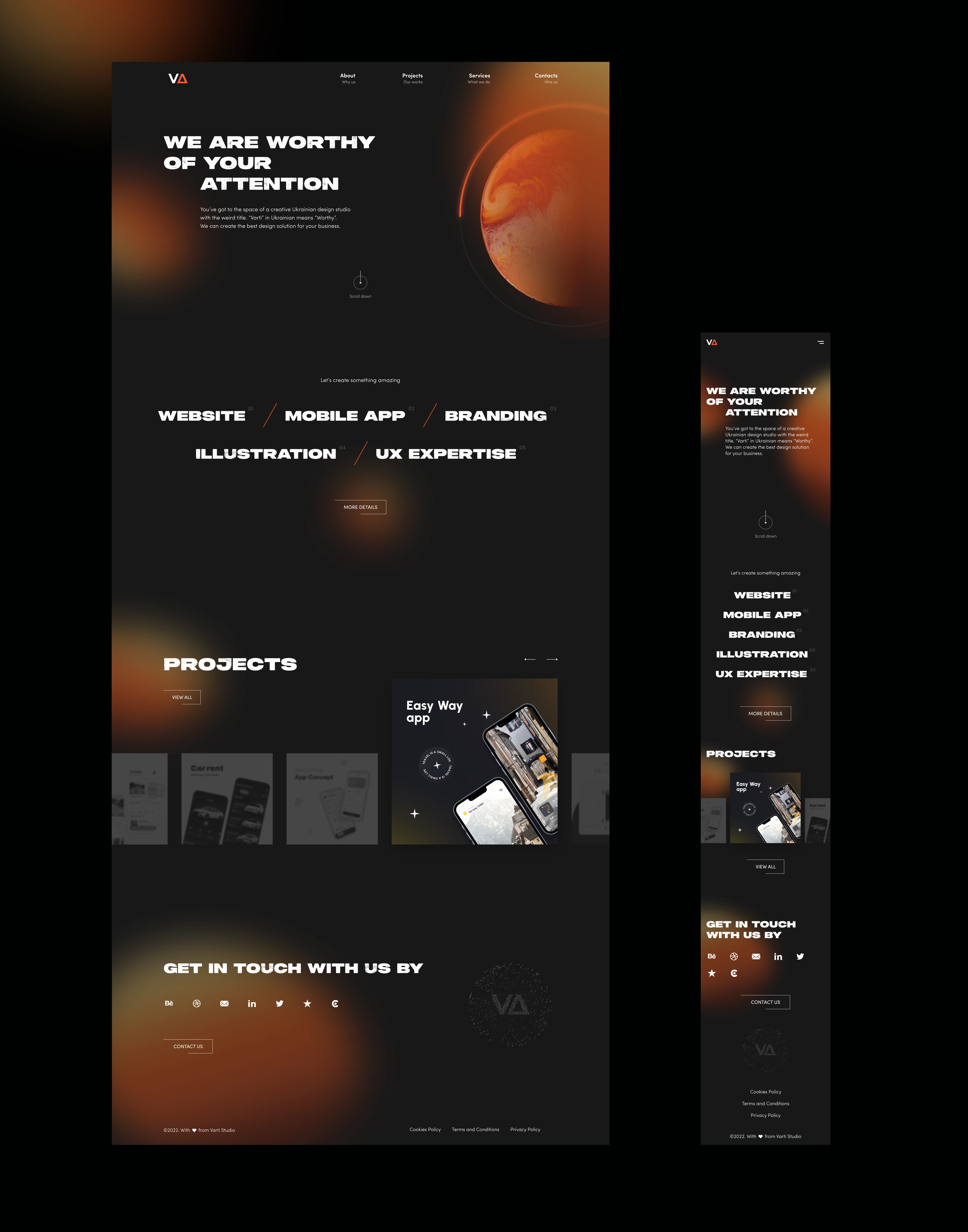 Redesign of a design studio website with a user-friendly structure, memorable visuals, bright accents, and all essential sections for a strong brand presence.
