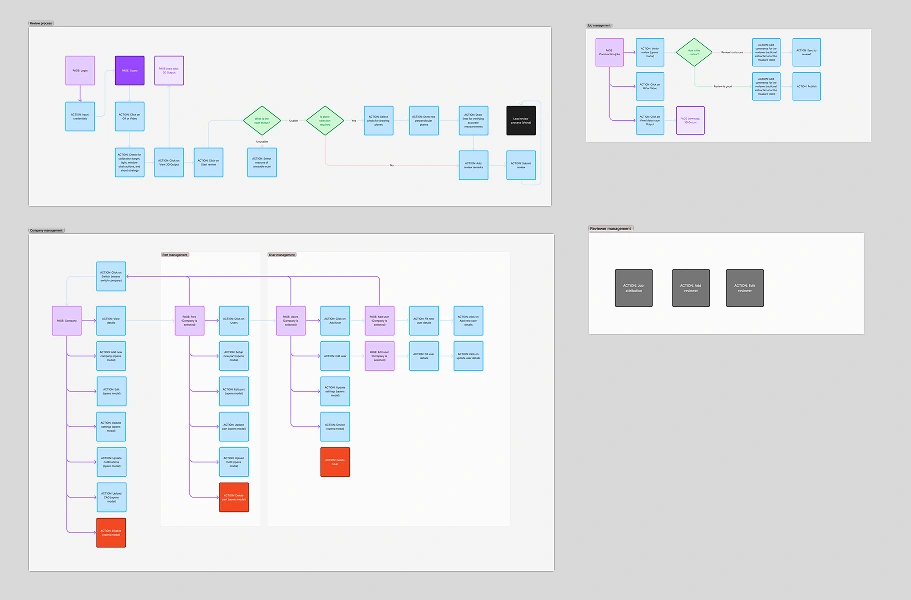 Created detailed flows for Admins, Reviewers, and Managers, identifying critical bottlenecks. Optimized interactions by reducing clicks and reorganizing tasks based on frequency and priority.