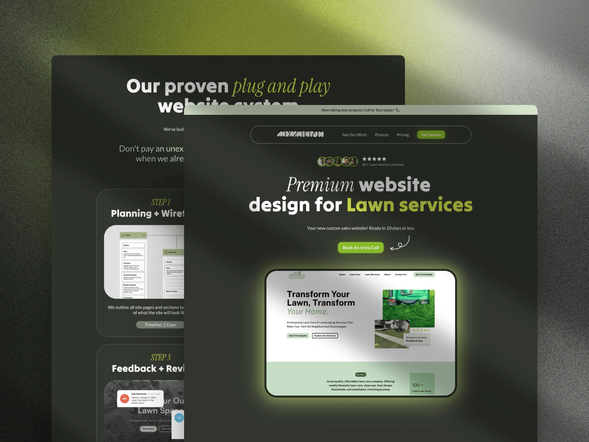Crafted from scratch in Framer with a focus on clean typography, strategic color use, and SEO best practices. This high-converting landing page was designed for a marketing agency targeting lawn care and landscaping businesses. Emphasis was on fast turnaround, ongoing maintenance, and driving leads through clear messaging and strong visual hierarchy.