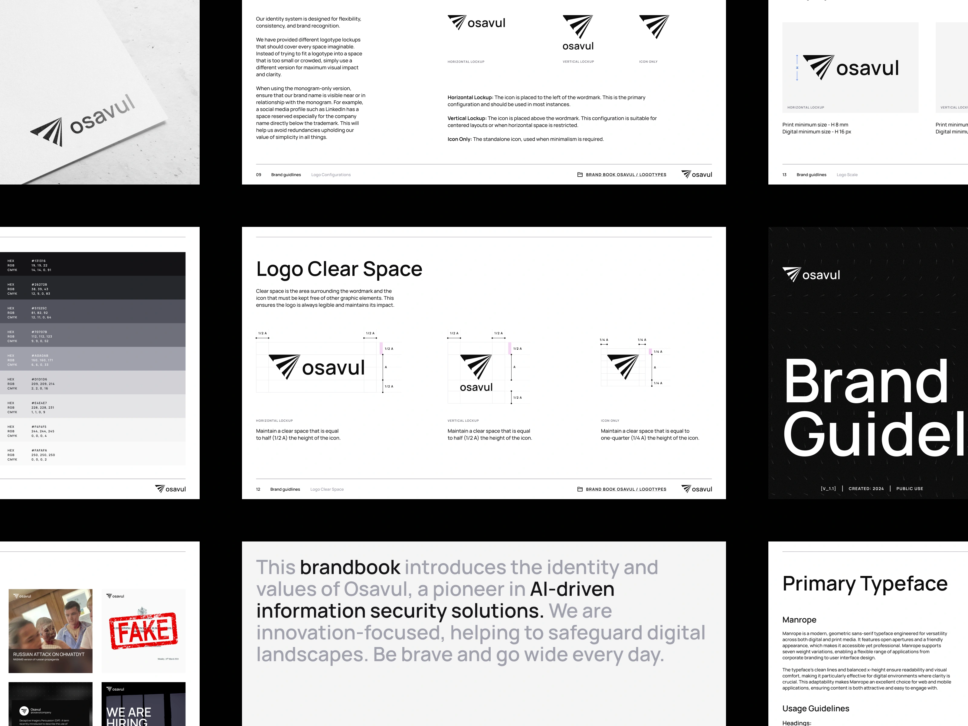 Osavul, an AI-driven cybersecurity company, needed a sharp and minimalistic identity that would stand out in the competitive digital security space. The challenge was to design a brand system that communicated intelligence, precision, and trust, while being adaptable across different platforms. Without a structured brandbook, Osavul risked inconsistent communication and a weaker presence in an industry where credibility is critical.