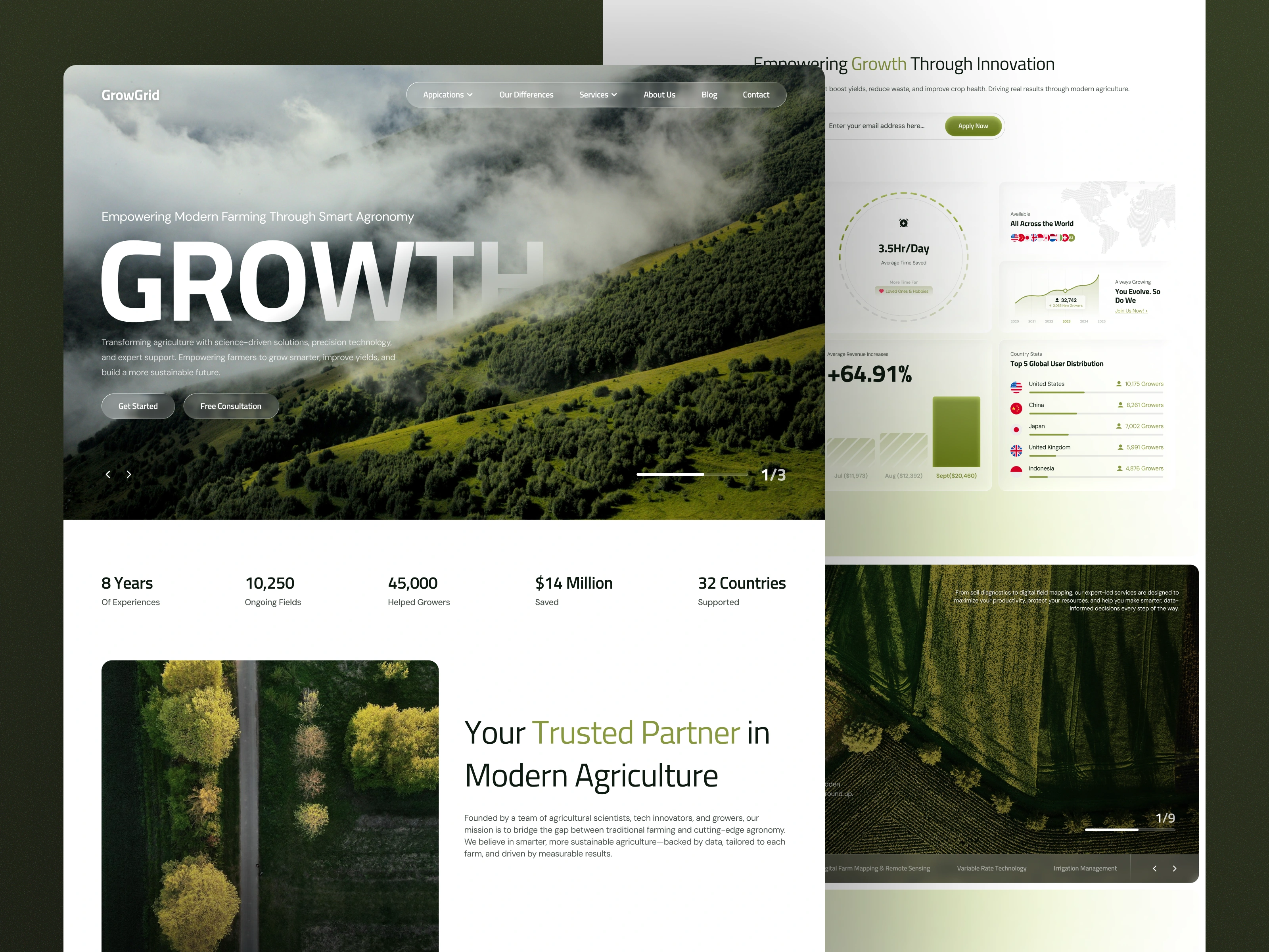 A clean, data-focused UI/UX that builds trust and highlights tools for optimizing crop yield and managing farm resources efficiently.