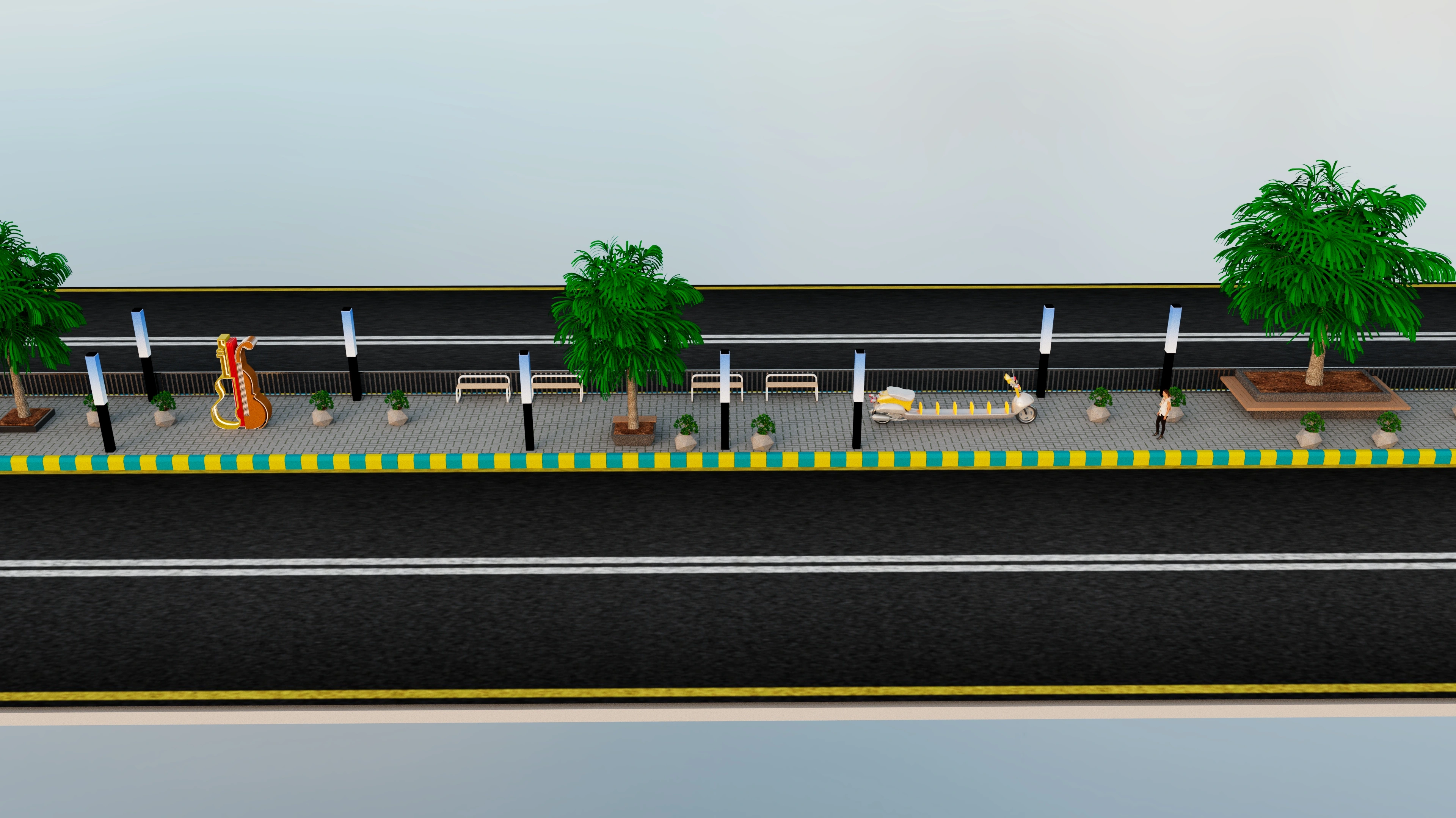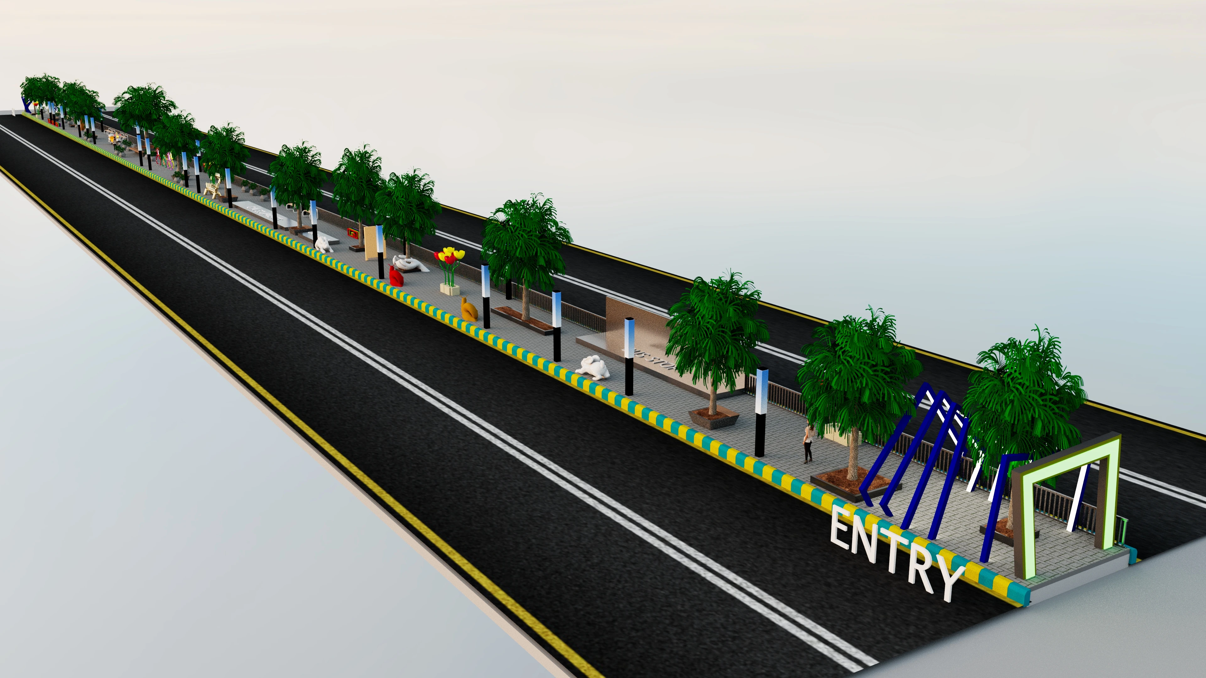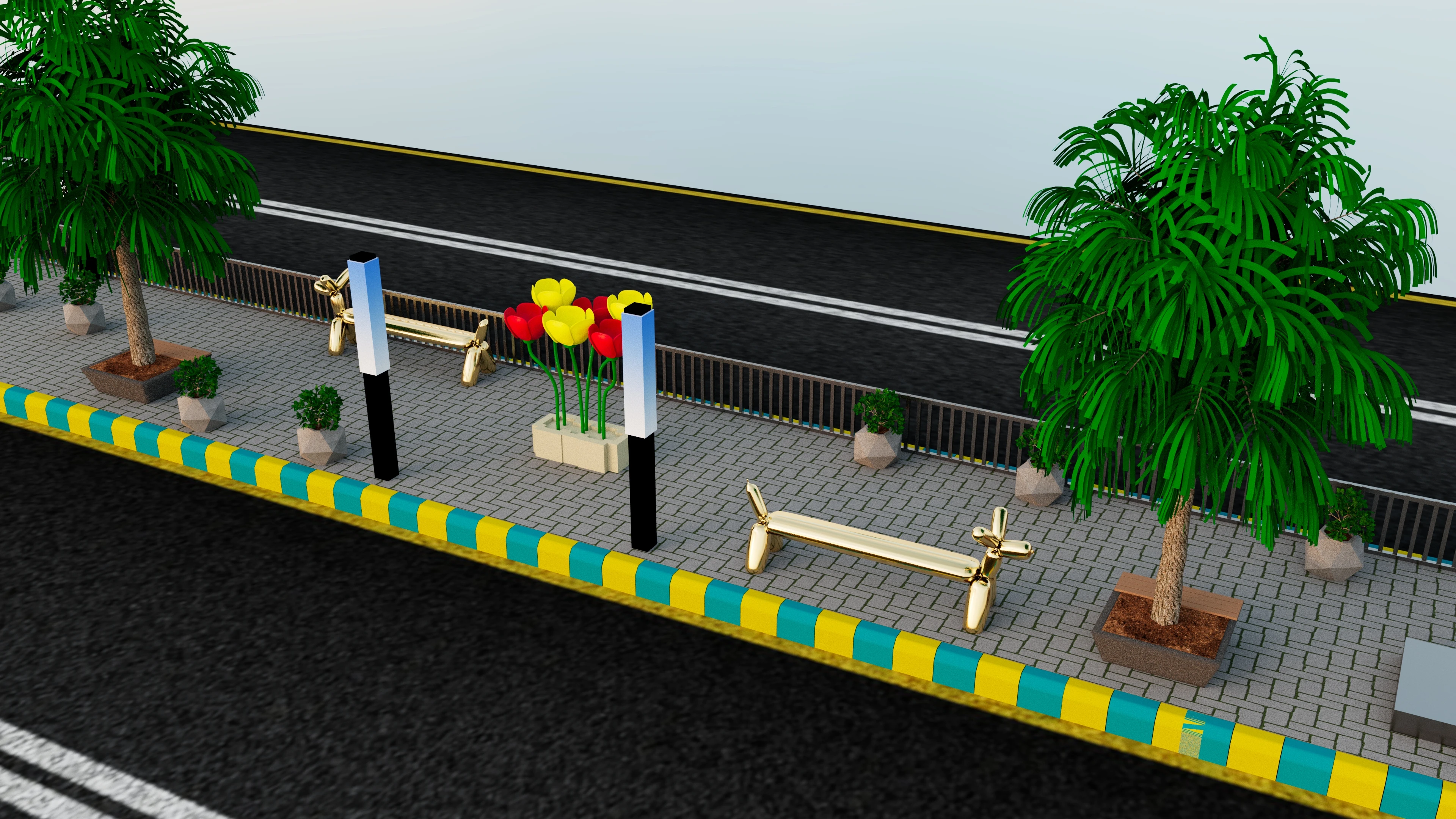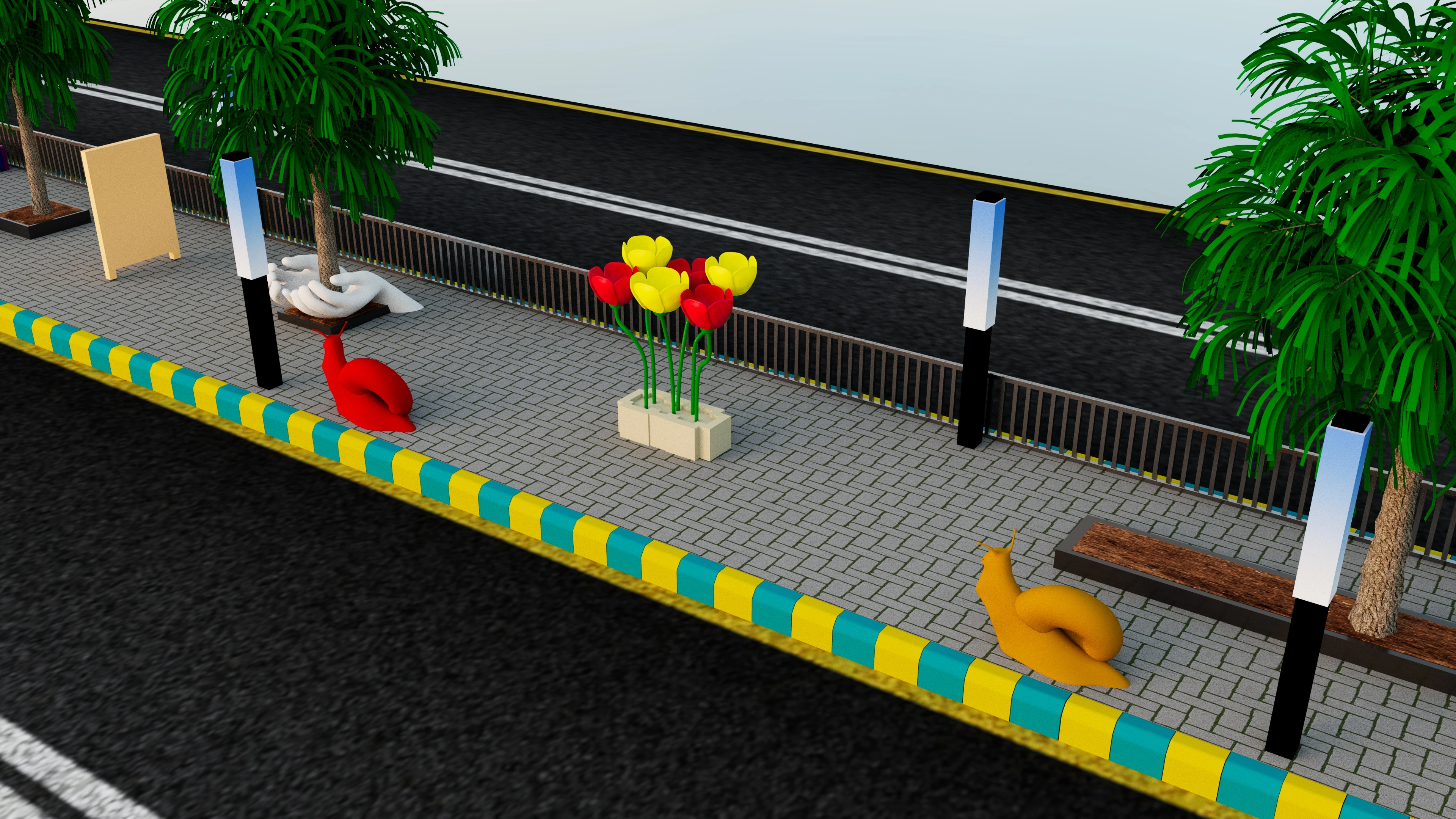 "This interactive sidewalk design blends creativity, real-world measurements, and public engagement to transform ordinary walkways into dynamic experiences. Designed entirely by me, this project involved extensive research—collecting online references, studying the real location, and analyzing its surroundings to ensure seamless integration. Executing as a government project, the design adheres to precise real-world dimensions, making it both visually striking and functionally practical."