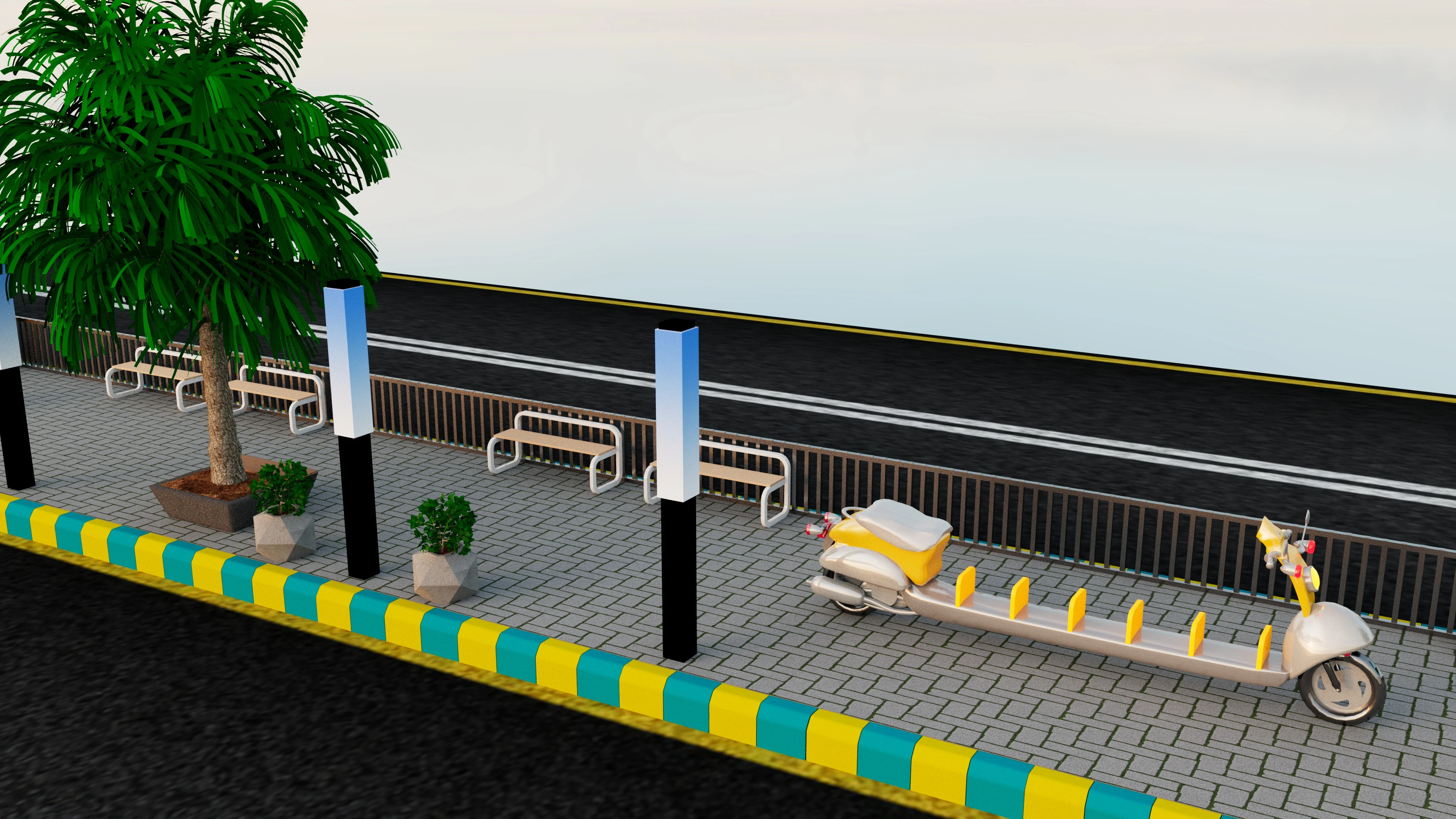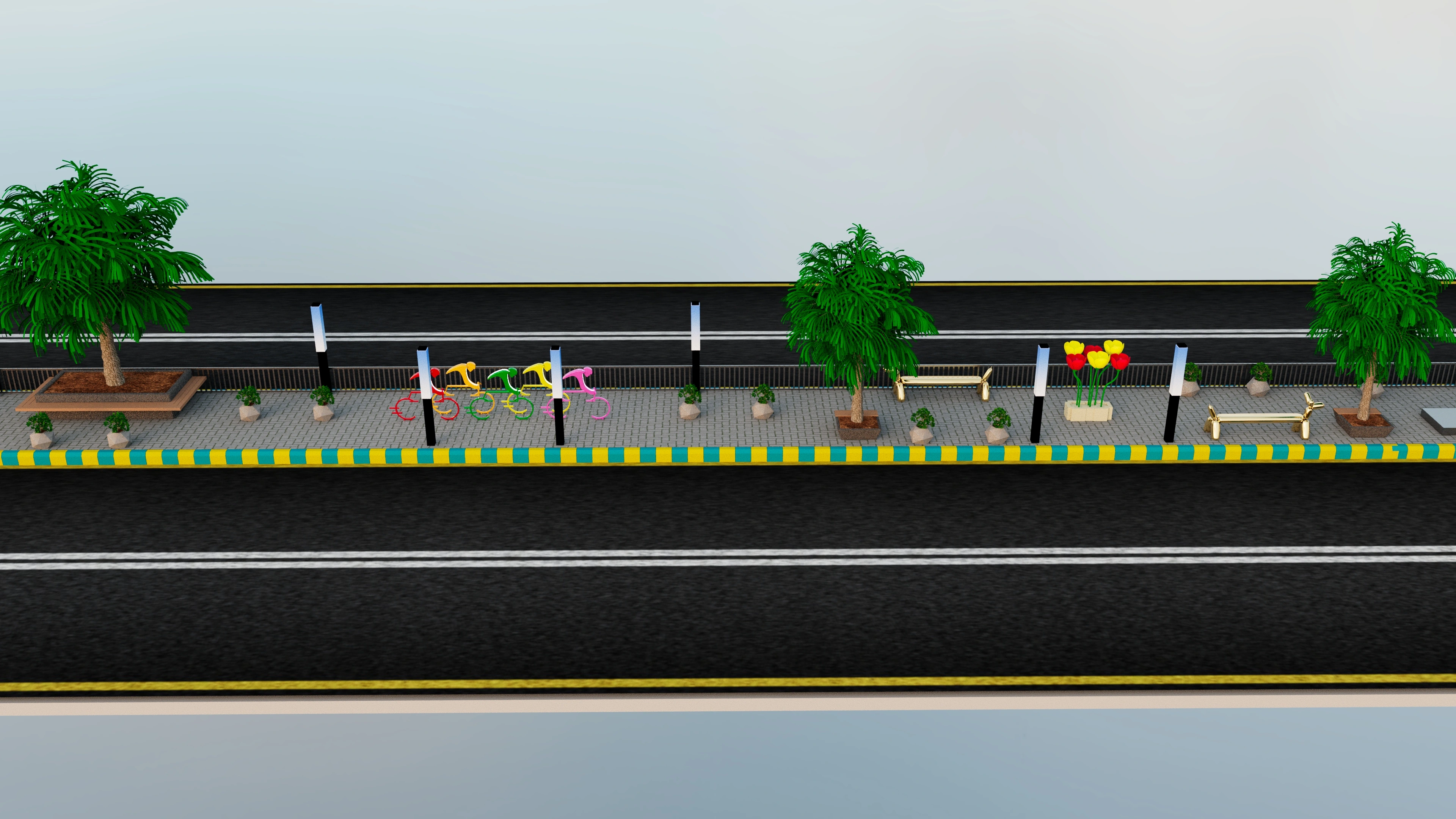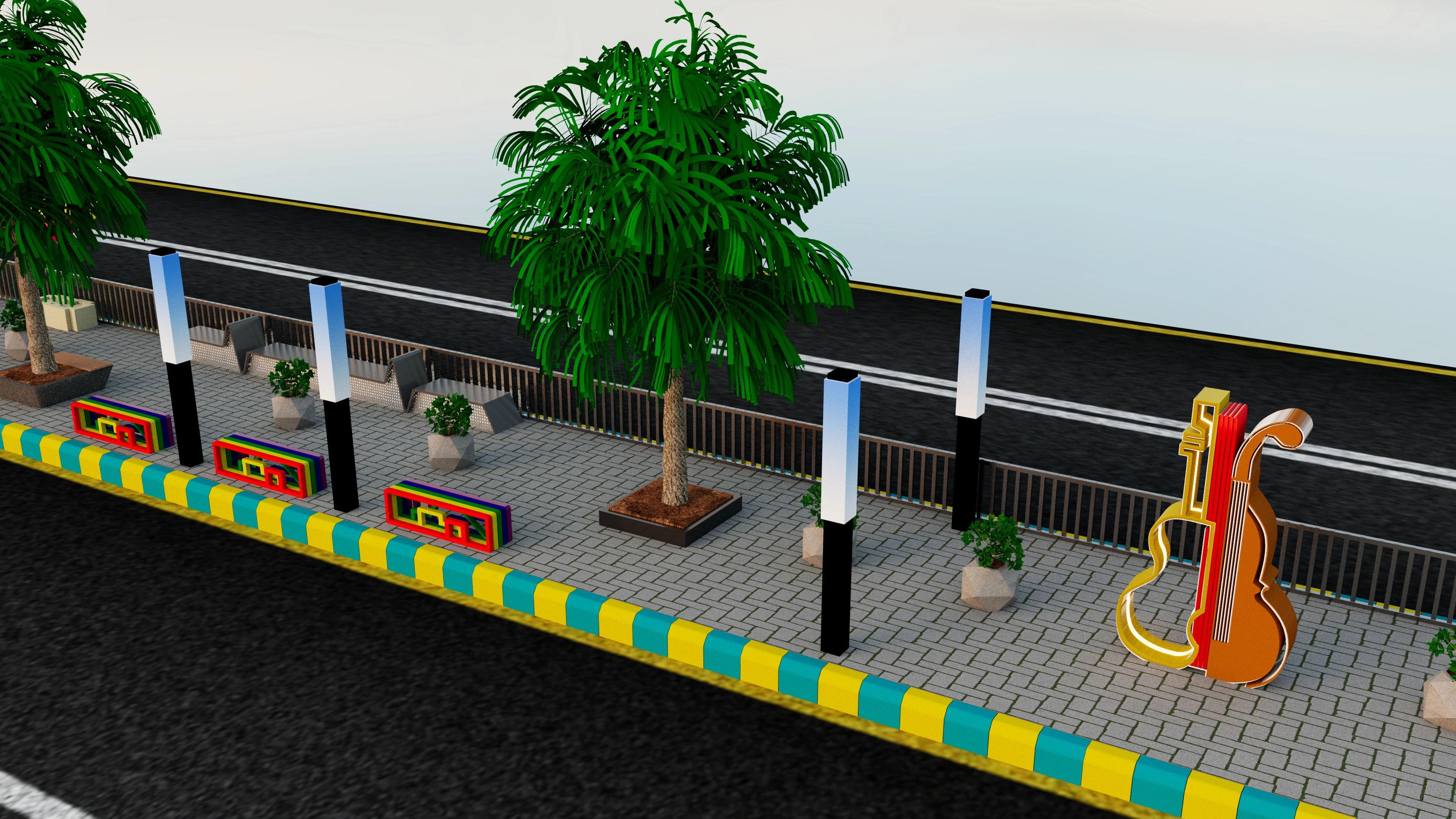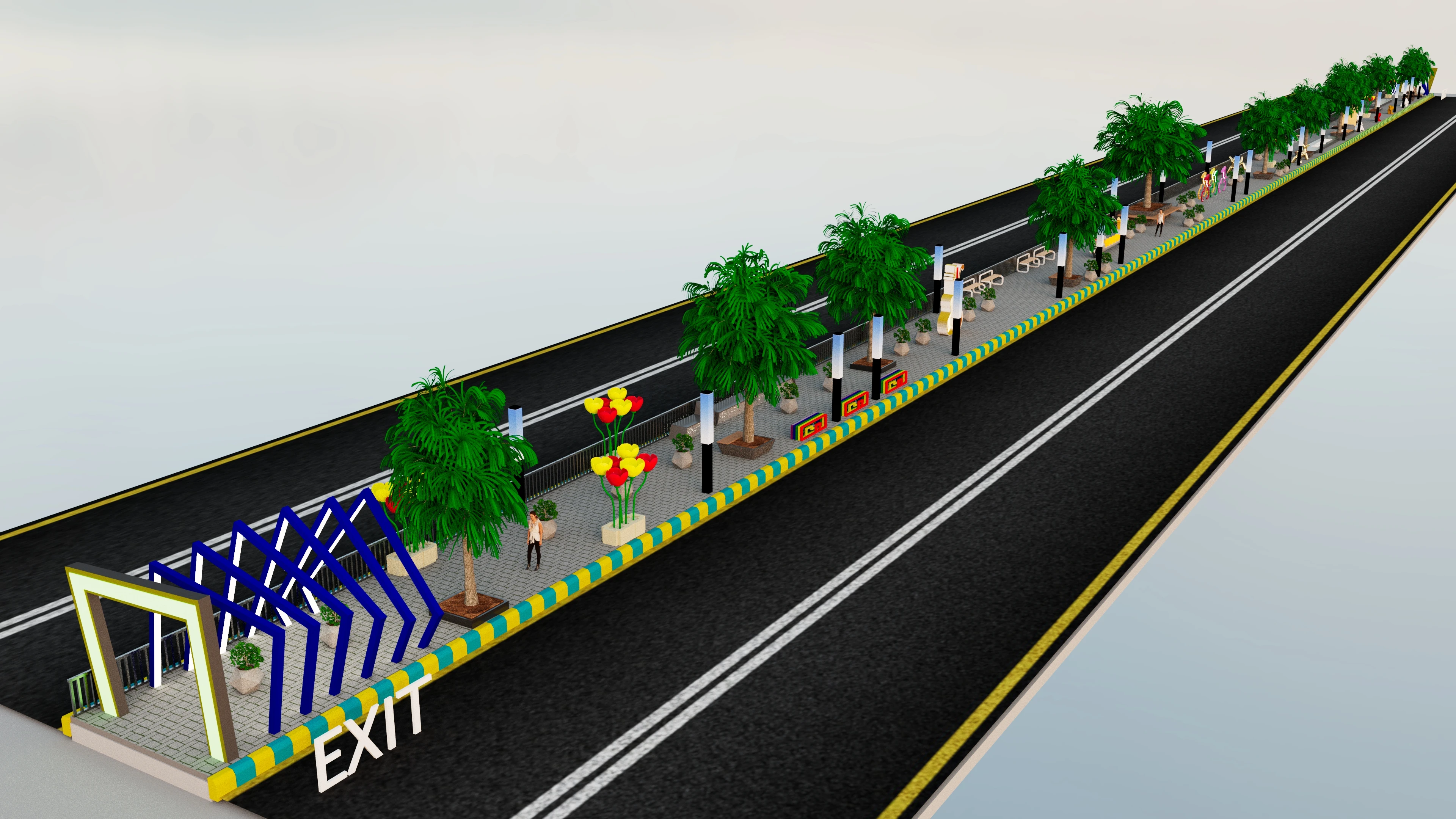 "This interactive sidewalk design blends creativity, real-world measurements, and public engagement to transform ordinary walkways into dynamic experiences. Designed entirely by me, this project involved extensive research—collecting online references, studying the real location, and analyzing its surroundings to ensure seamless integration. Executing as a government project, the design adheres to precise real-world dimensions, making it both visually striking and functionally practical."
