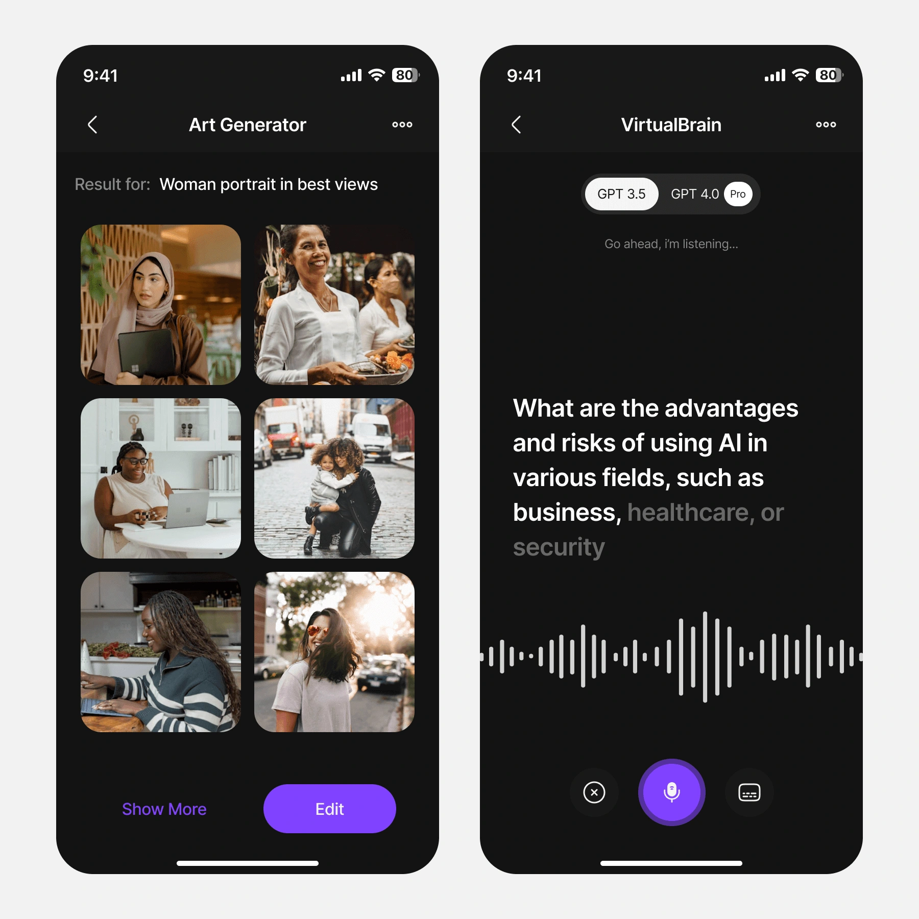 Brainny is an AI-powered mobile app that allows users to generate images, convert text to speech, and ask questions using GPT technology all in one platform.