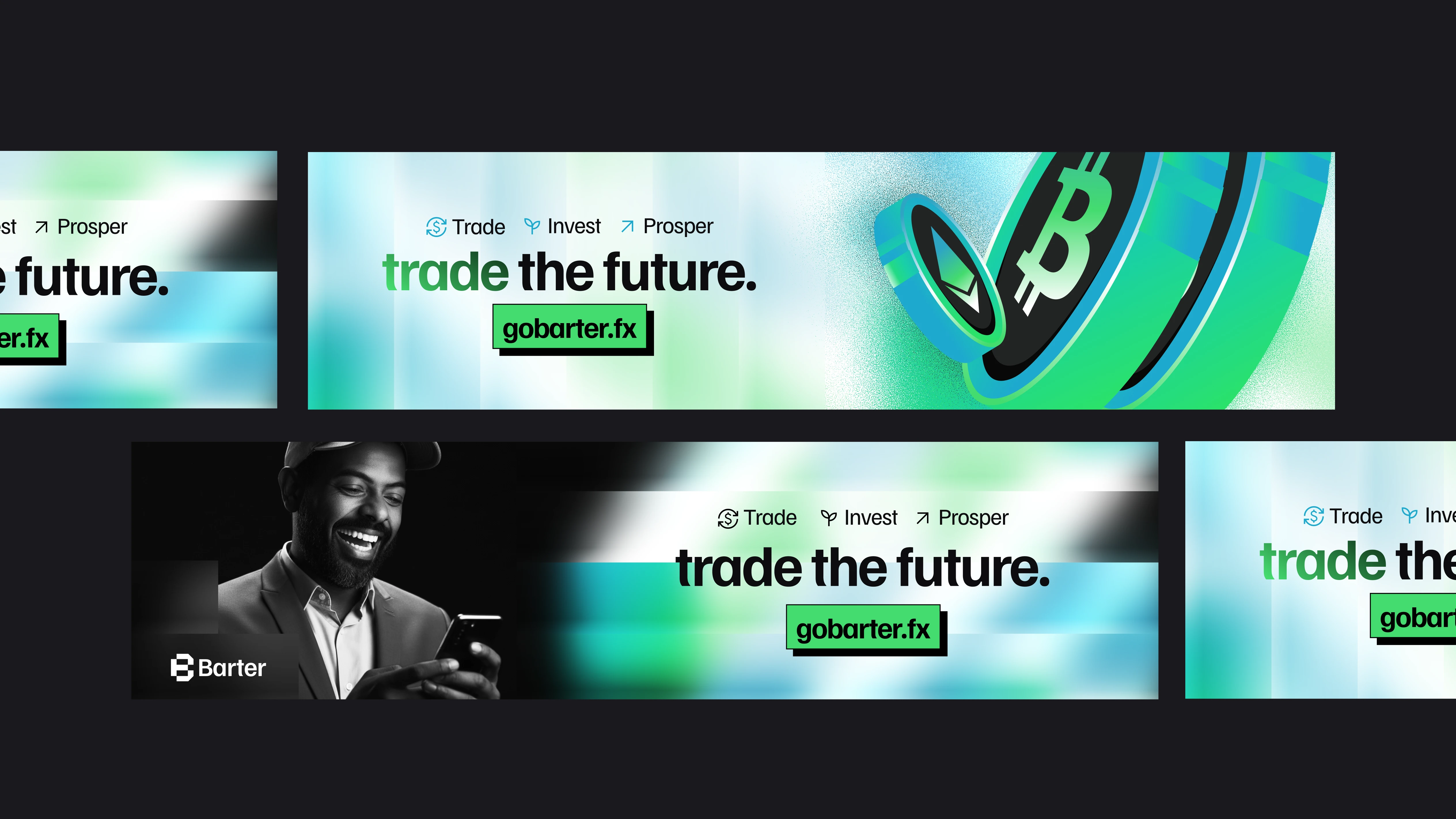 Barter is a next-generation digital trading and investment platform designed to simplify how people exchange and grow digital assets. The project aimed to establish a cohesive brand system that communicates trust, innovation, and accessibility — essential traits for a fintech brand entering a fast-evolving Web3 and digital finance ecosystem.