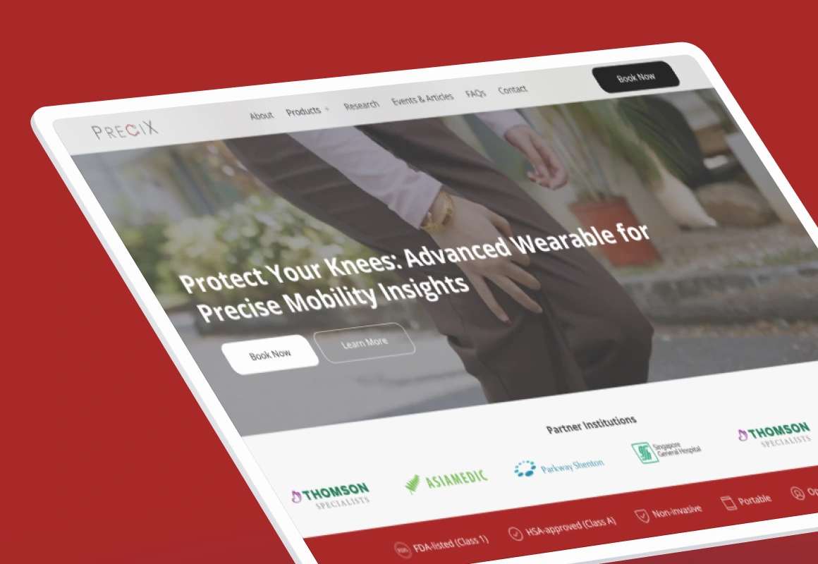 Precix is advancing the field of mobility wearables with a focus on protecting knee health through precise, non-invasive insights. I partnered with the Precix team to create a clean, medically-focused marketing site in Webflow that serves both clinical and consumer audiences. The build emphasizes trust, scientific backing, and clear product benefits, all while maintaining strict usability and accessibility standards.