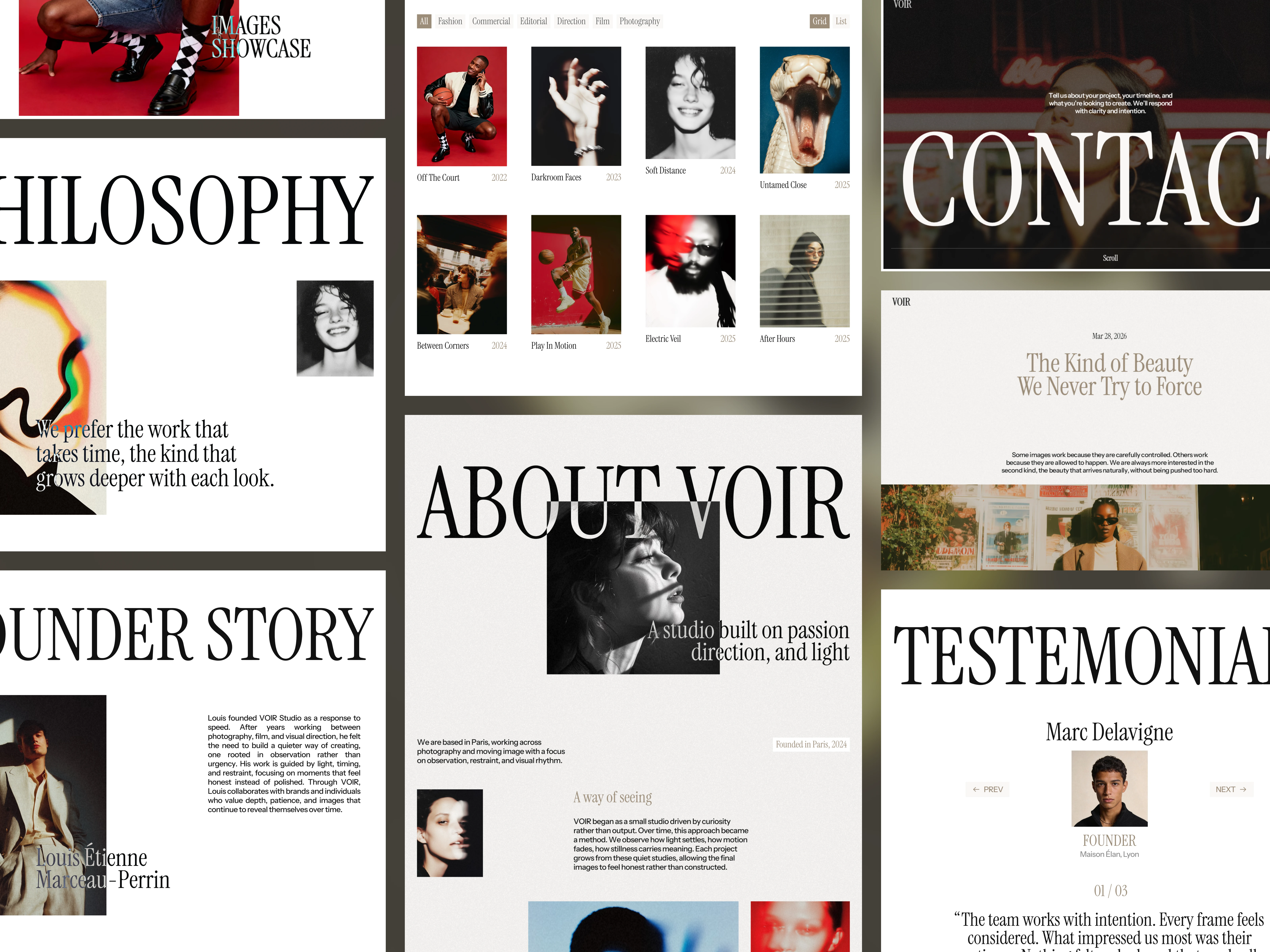VOIR is a Framer template designed for studios that work in film, photography, and visual production.