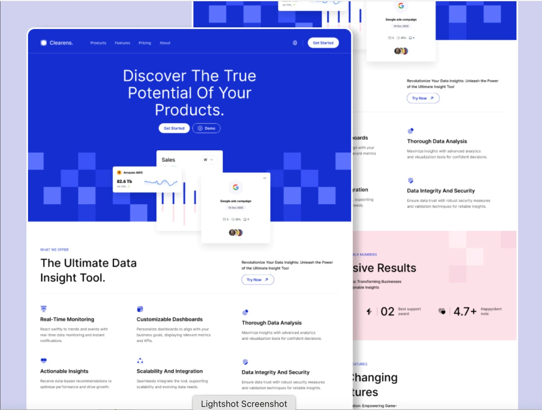 UI design crafted in Figma and seamlessly developed in Framer for the Clearens project