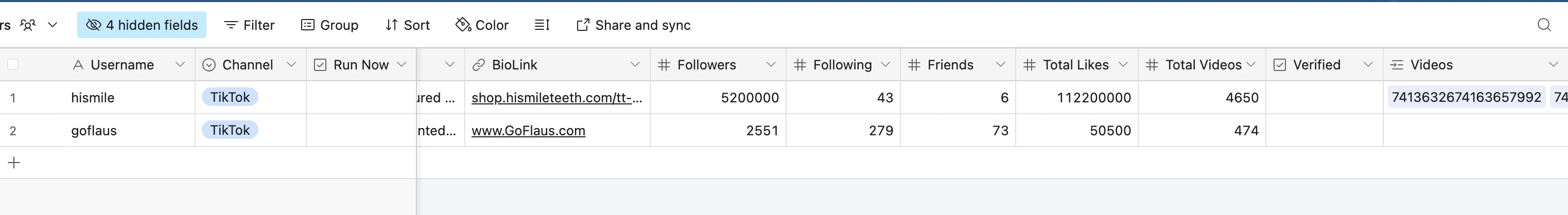 Automated social media profile analysis using Airtable, Make, and Apify.