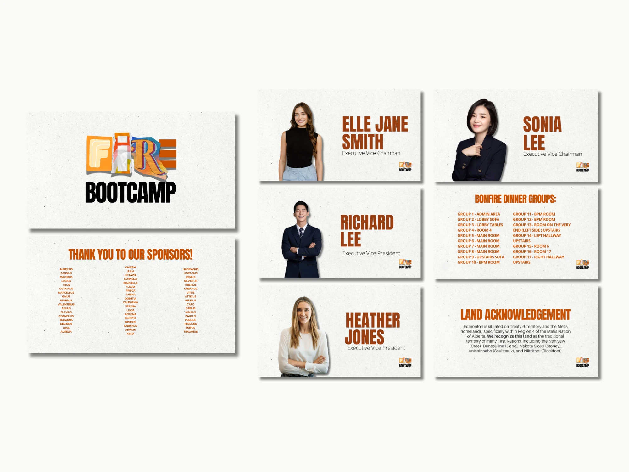 The project resulted in a cohesive and visually engaging presentation experience that effectively captured the event’s brand identity, highlighted each speaker’s unique personality, and resonated strongly with a young professional audience. It enhanced audience engagement, facilitated clear communication of key messages, and elevated the overall perception of the FIRE Bootcamp conference.