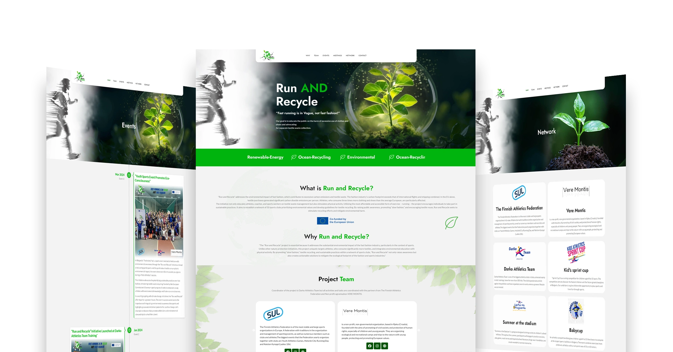 Web platform for the Run & Recycle Erasmus+ initiative promoting sustainable sports and textile recycling awareness.