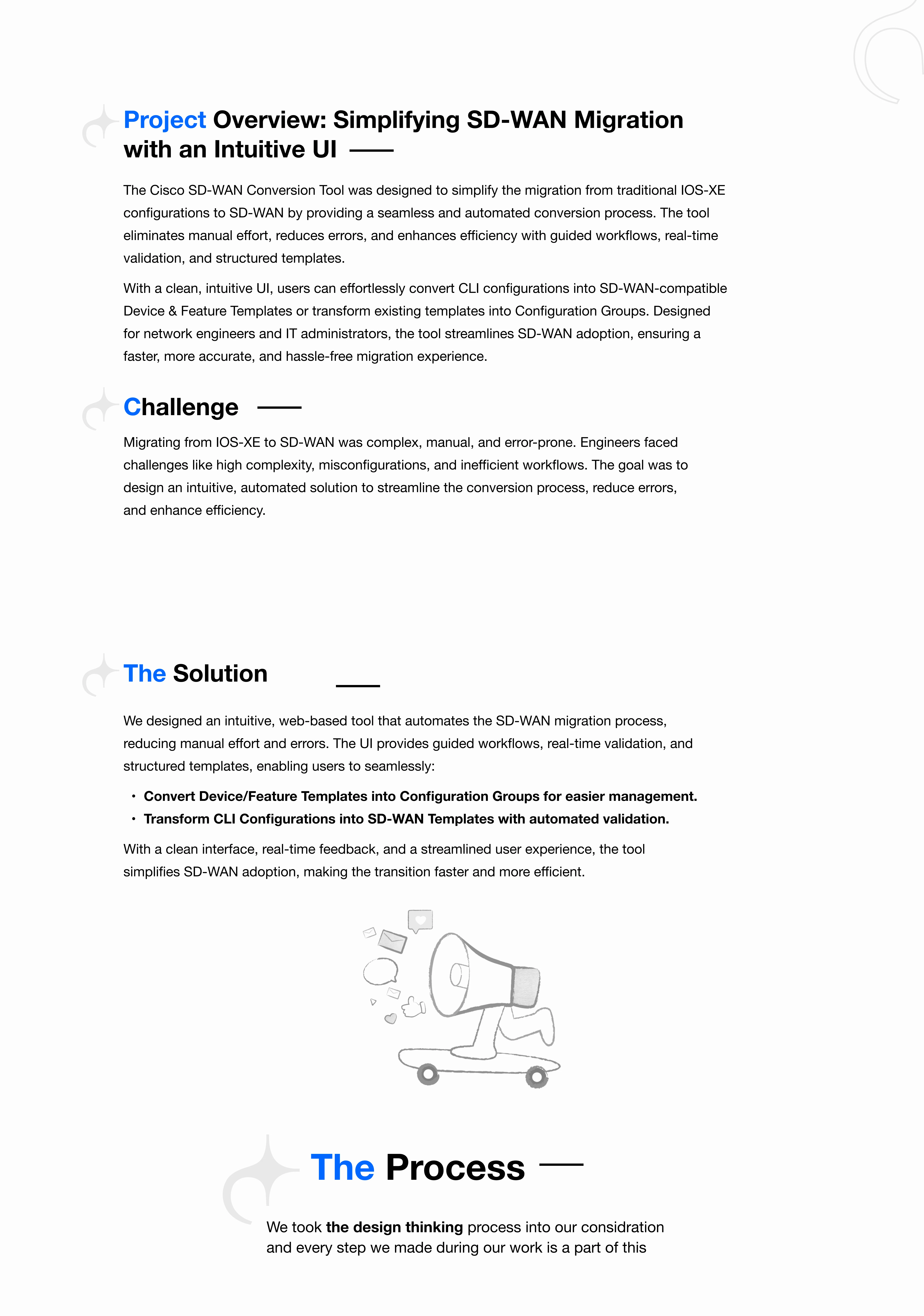 Redesigned Cisco’s SD-WAN Conversion Tool via Xgrid, simplifying legacy-to-SD-WAN config migration with a cleaner, faster, and intuitive UX.