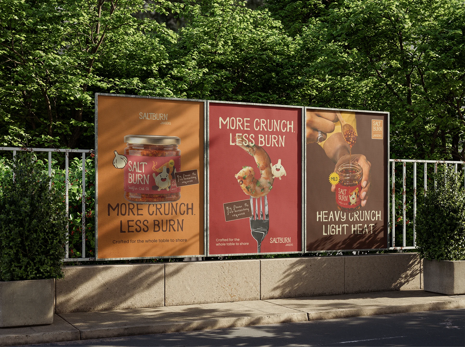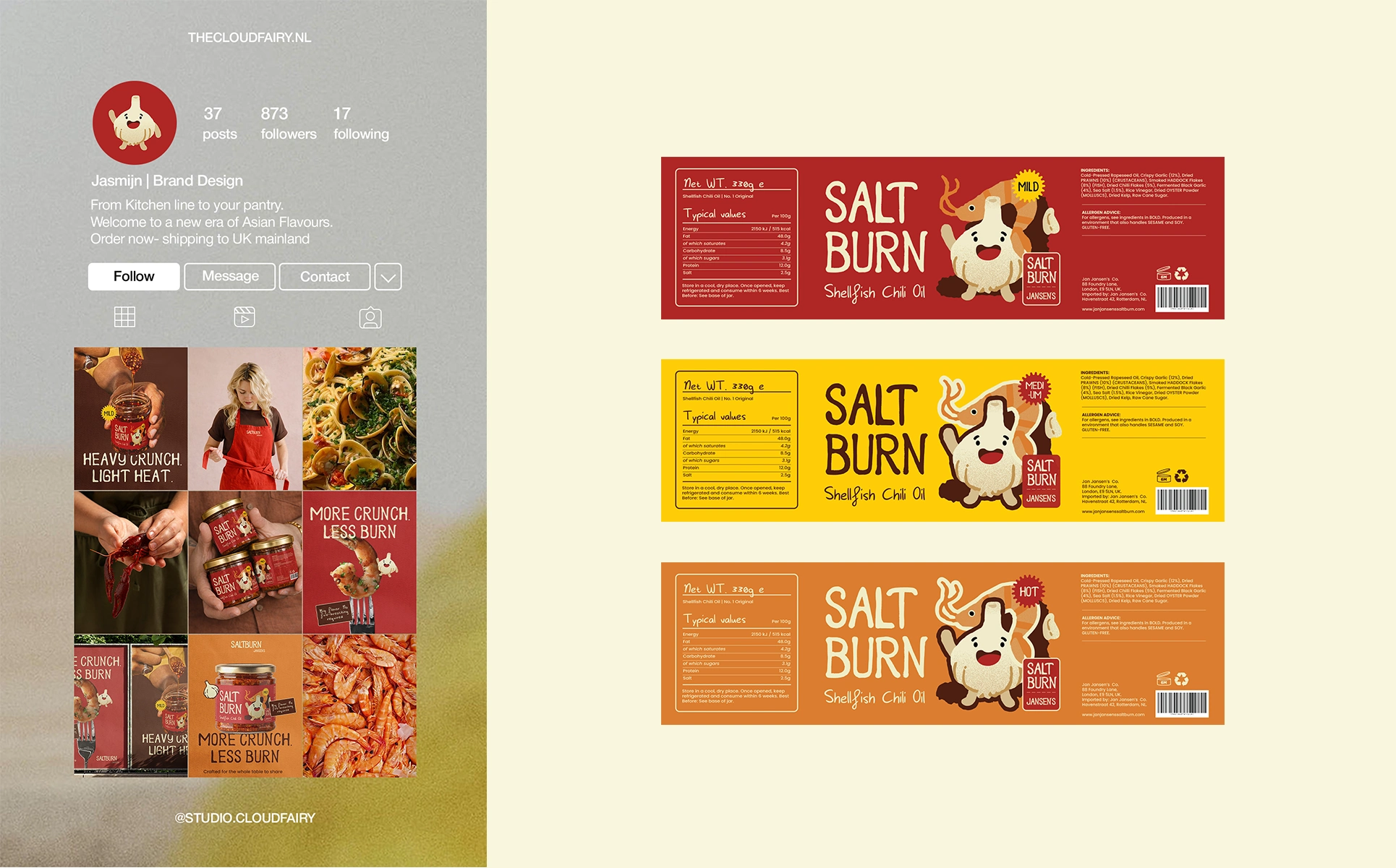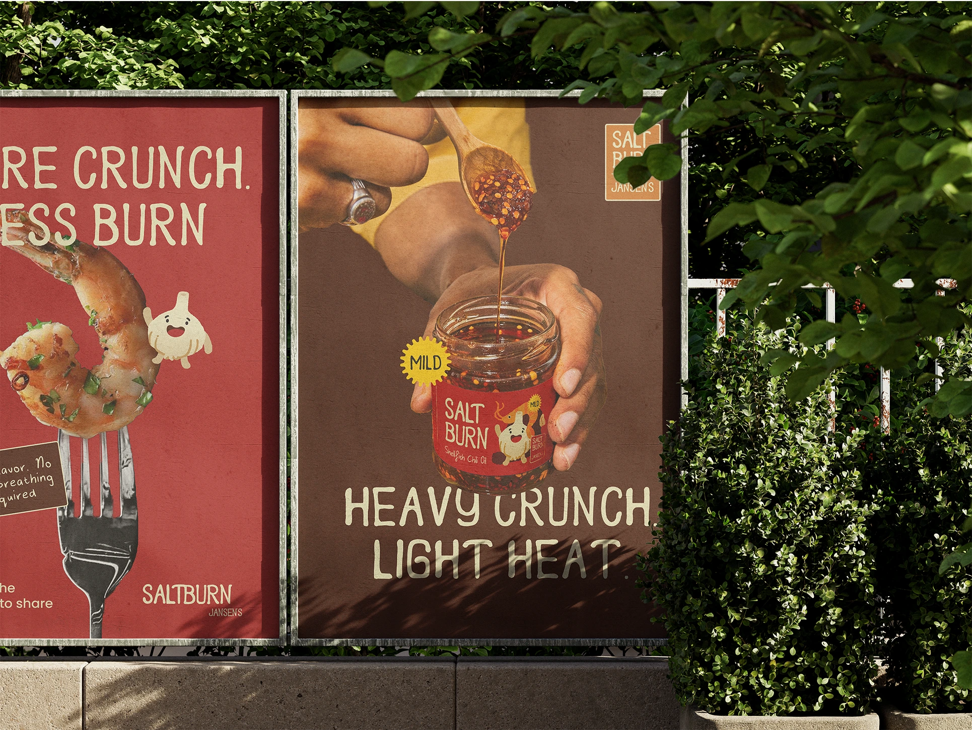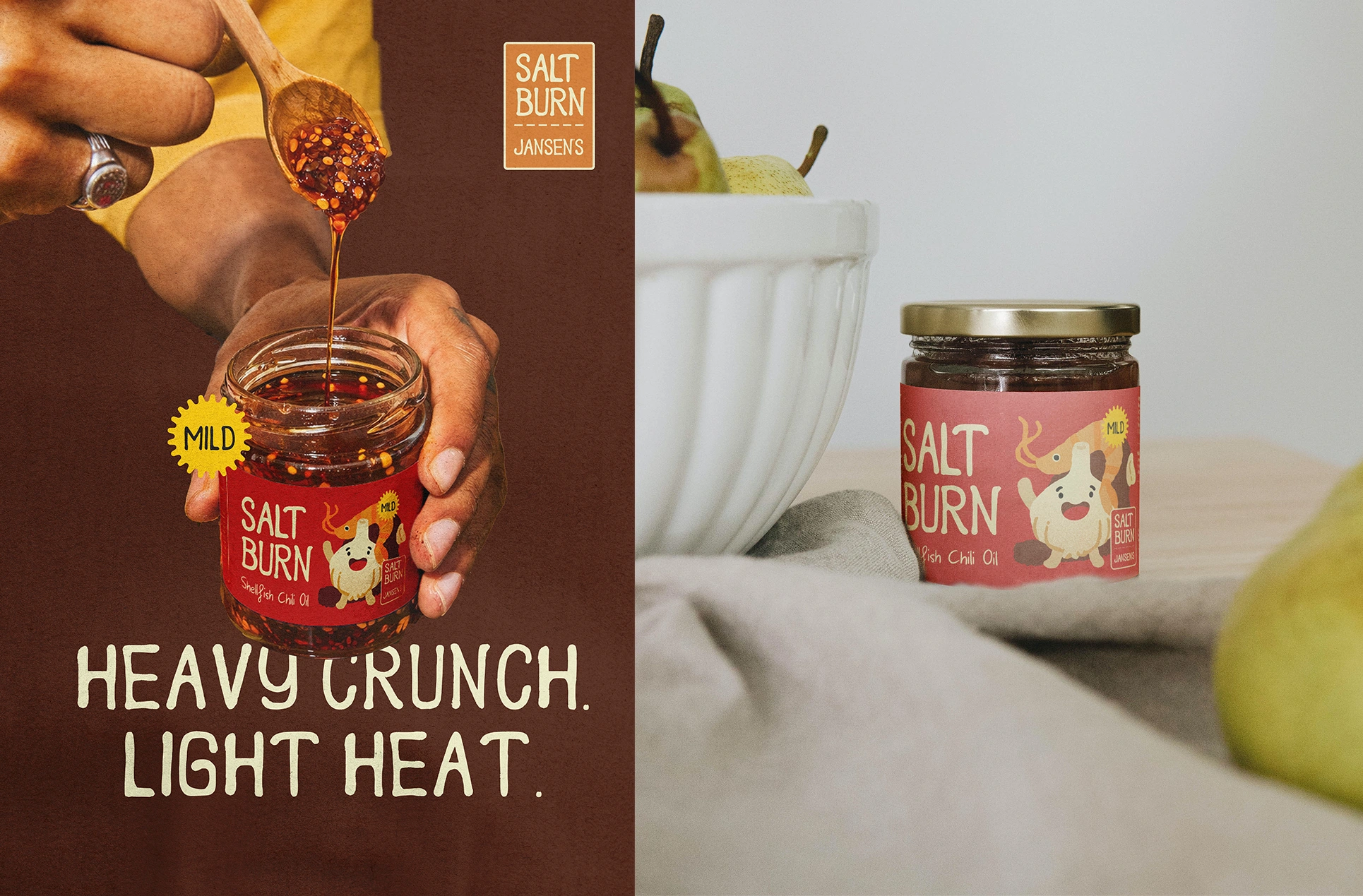 A complete brand identity created in one week for Salt Burn, a shellfish chili oil concept built around Jansen, a chef dreaming of opening his own restaurant.