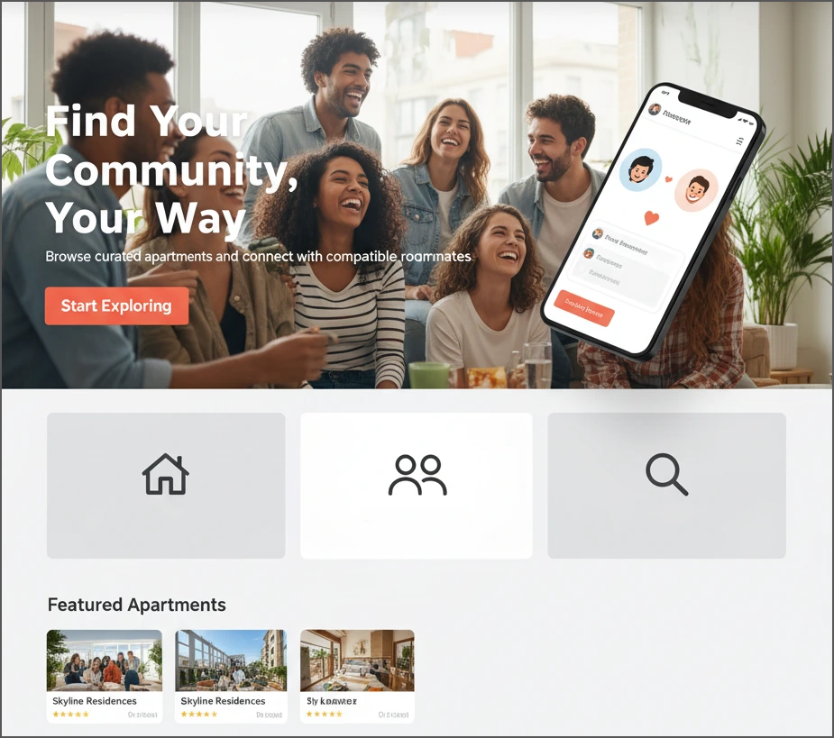 Goal: Create an integrated platform that streamlines the entire rental journey from property discovery to roommate matching, using AI and user verification to improve success rates and reduce search time.