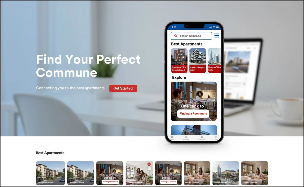 Commune: A comprehensive rental platform that transforms the rental market by streamlining property discovery, evaluation, and management for both renters and property owners while addressing roommate matching challenges.