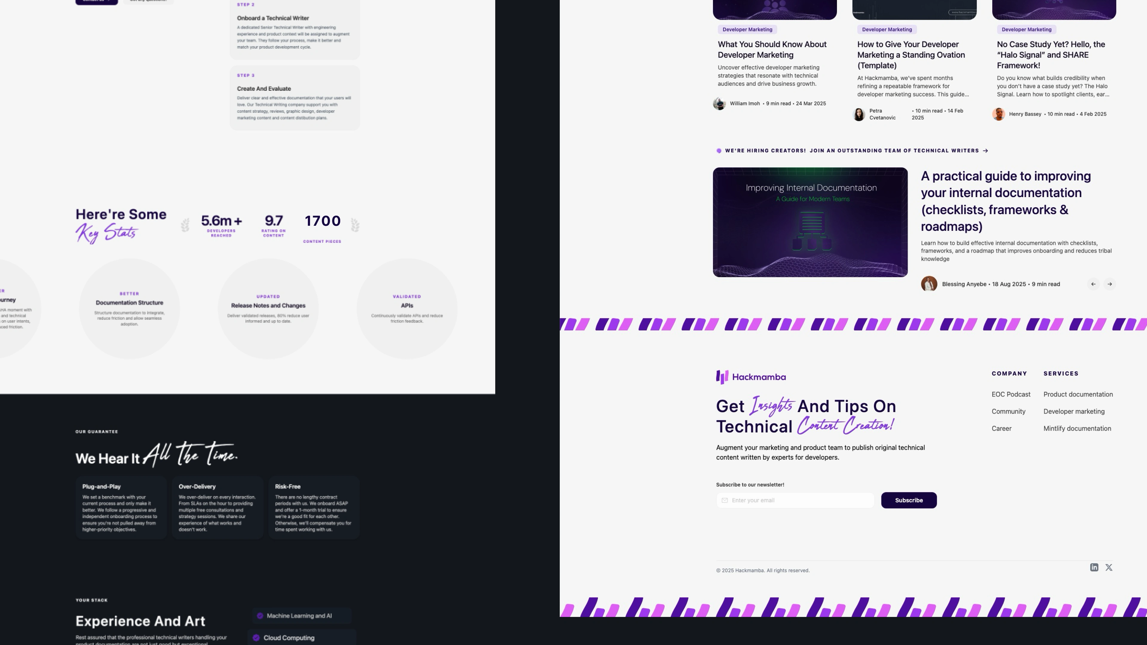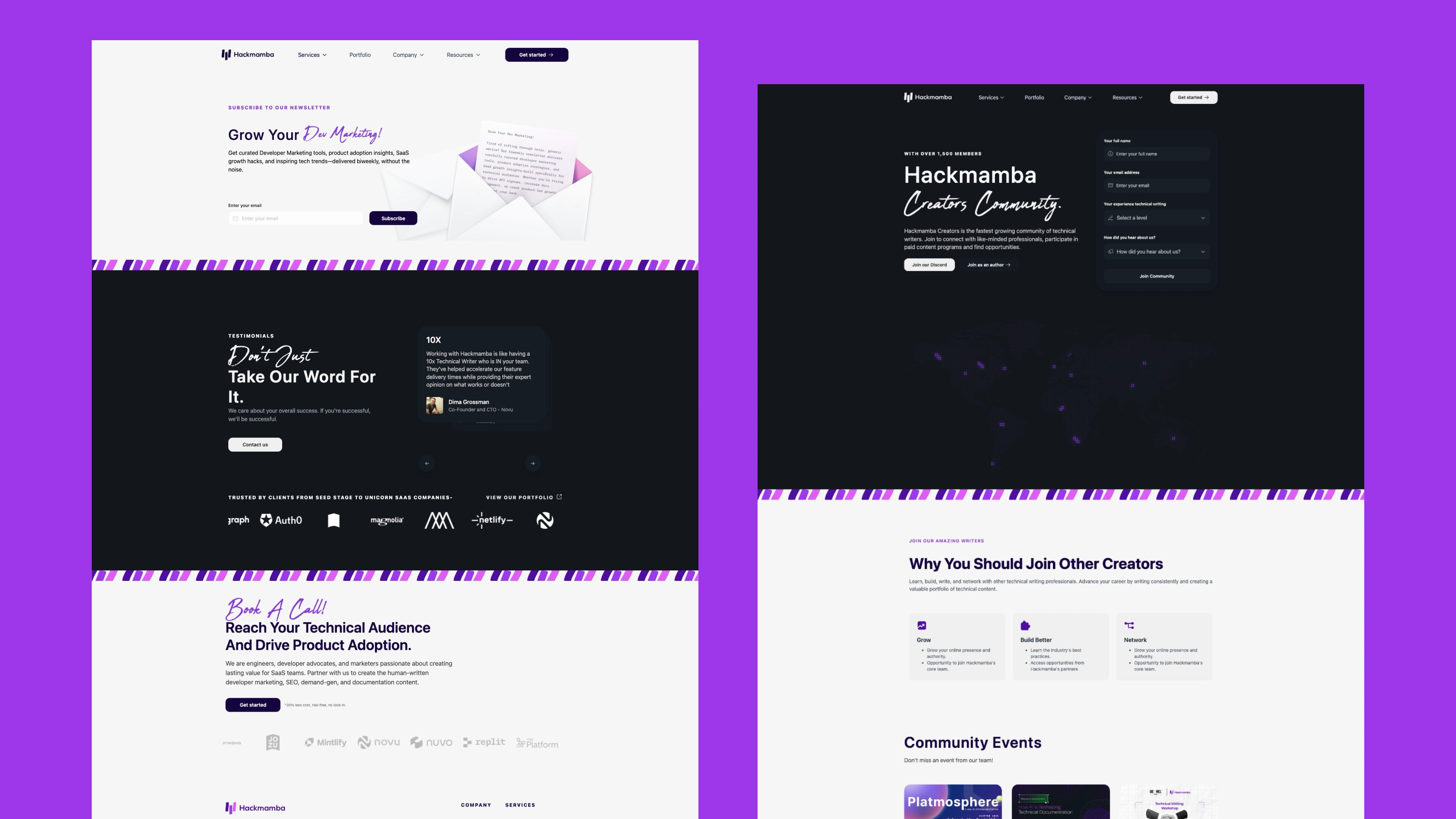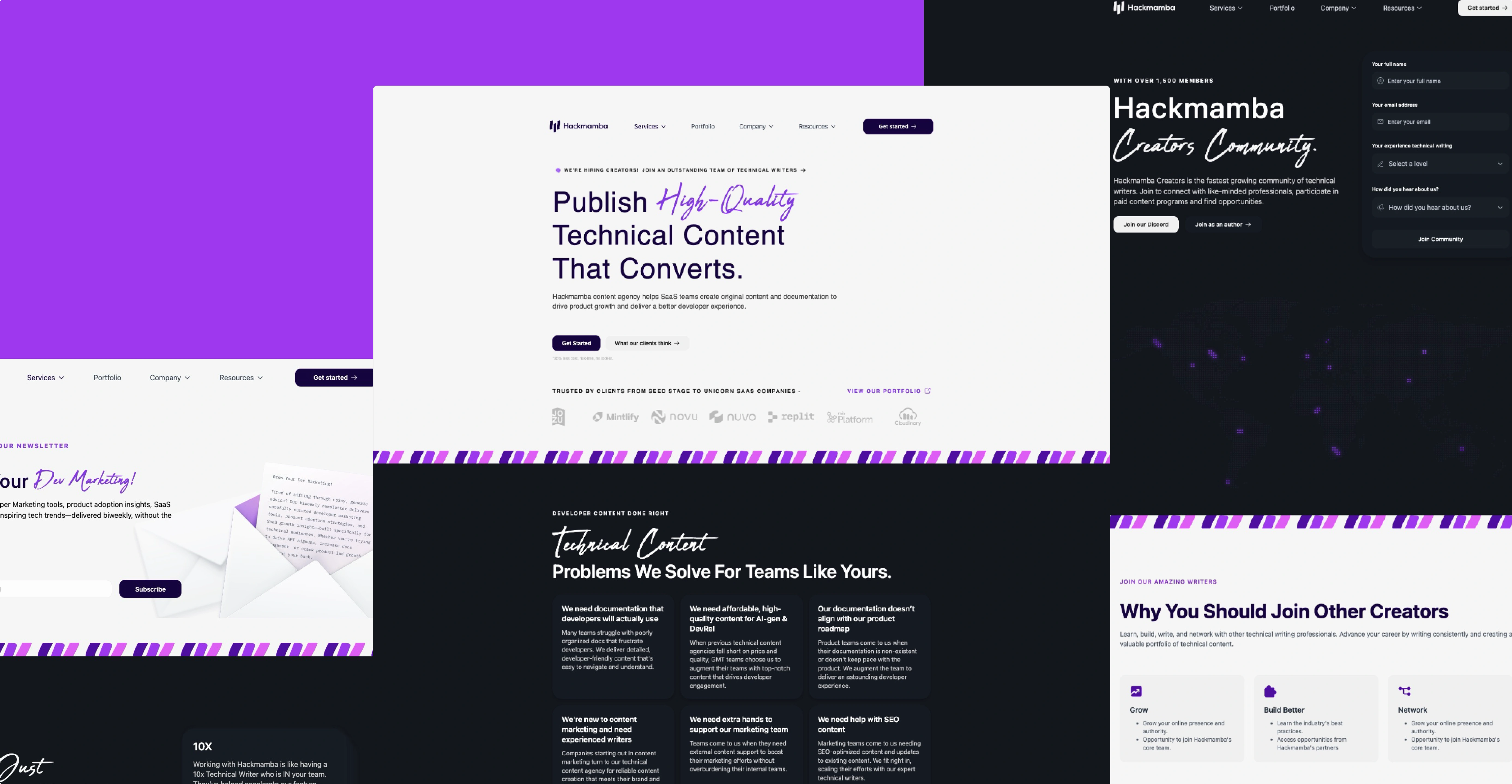 When I joined Hackmamba, the focus was clear: the company needed a fresh digital presence that matched its ambition. I started by redesigning the main website, shaping it into something cleaner, faster, and easier to navigate. But it wasn’t just about visuals—the overhaul was about creating a foundation the team could build on.