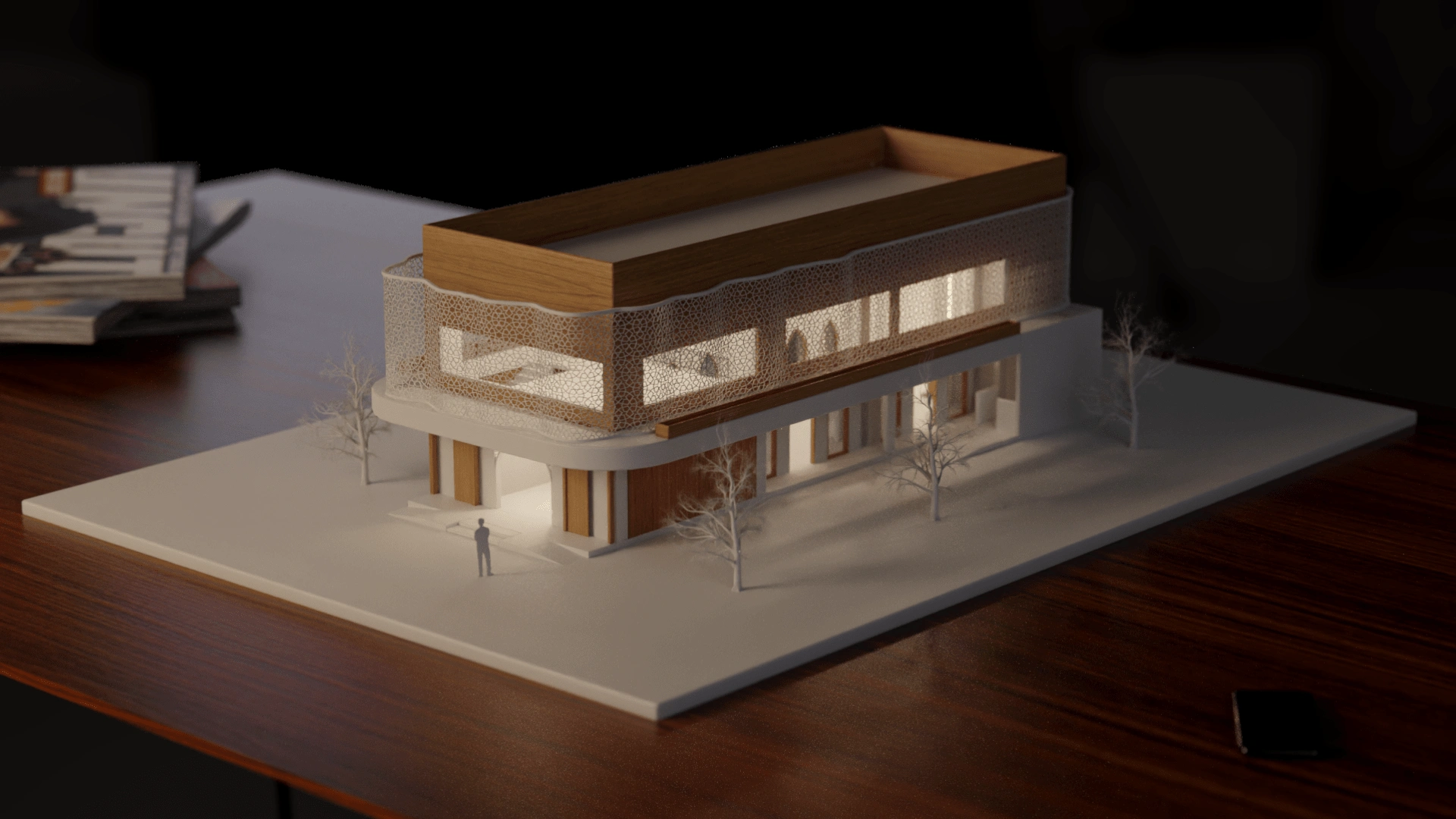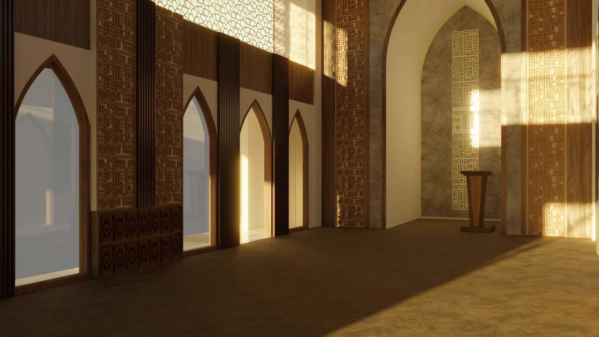 I developed a contemporary design that integrated local elements, using a brown color palette and wooden accents. I also designed a geometric façade with large openings on the second floor to enhance natural lighting, creating striking shadow effects in the mornings. My design successfully maintained the cultural identity of the mosque while modernizing its appearance and improving its functionality, all while creating a welcoming and well-lit interior.