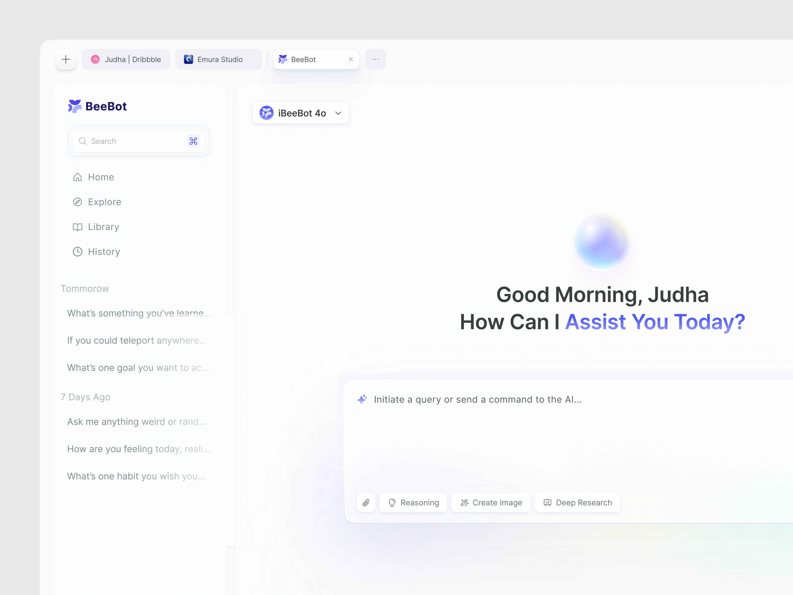 BeeBot is an AI-powered chatbot designed to assist users in generating both text and images through natural conversations. With an intuitive interface and vibrant gradient visuals, BeeBot makes AI interactions feel smart, smooth, and visually engaging — perfect for Gen Z users who value both function and aesthetic.