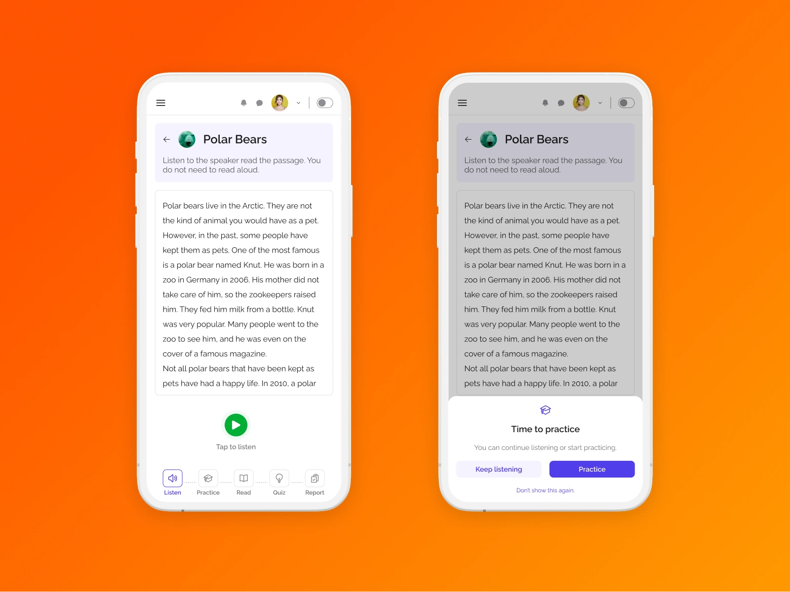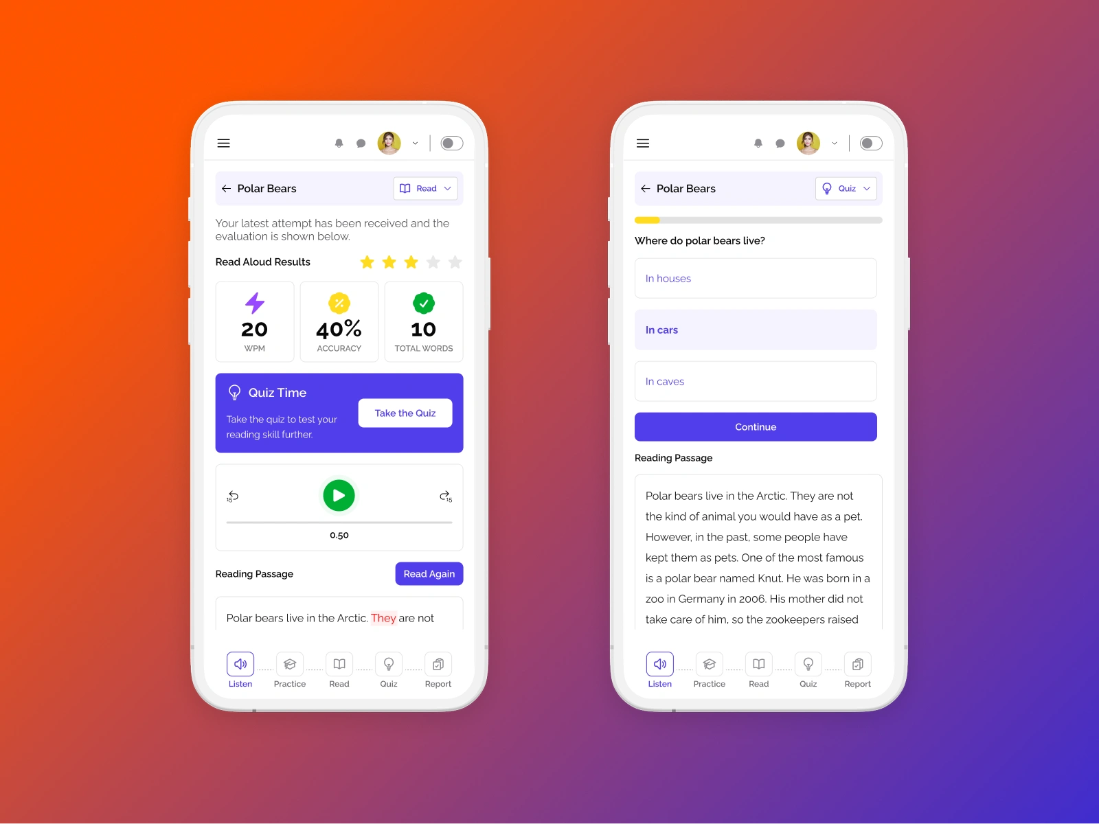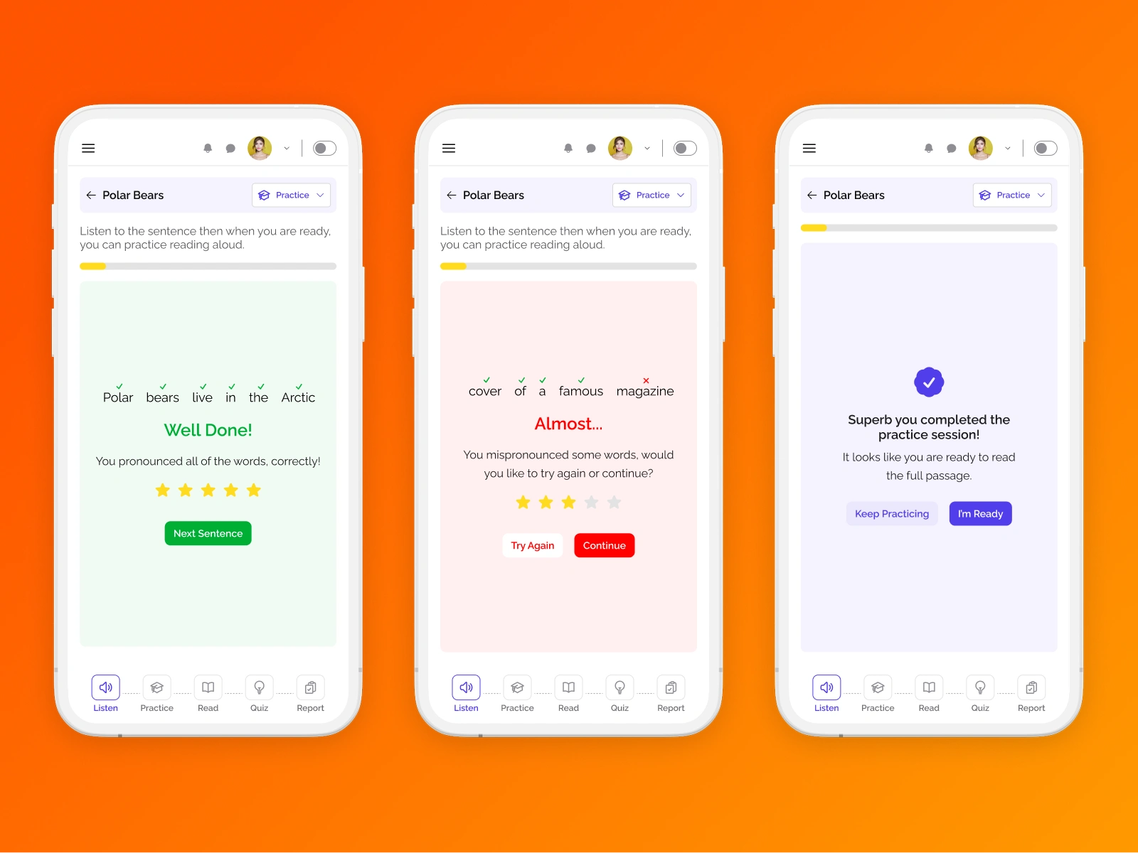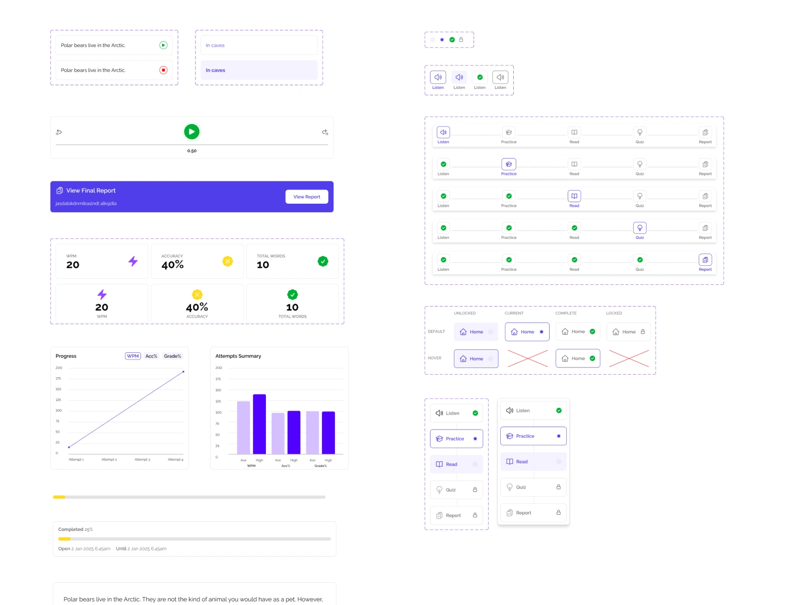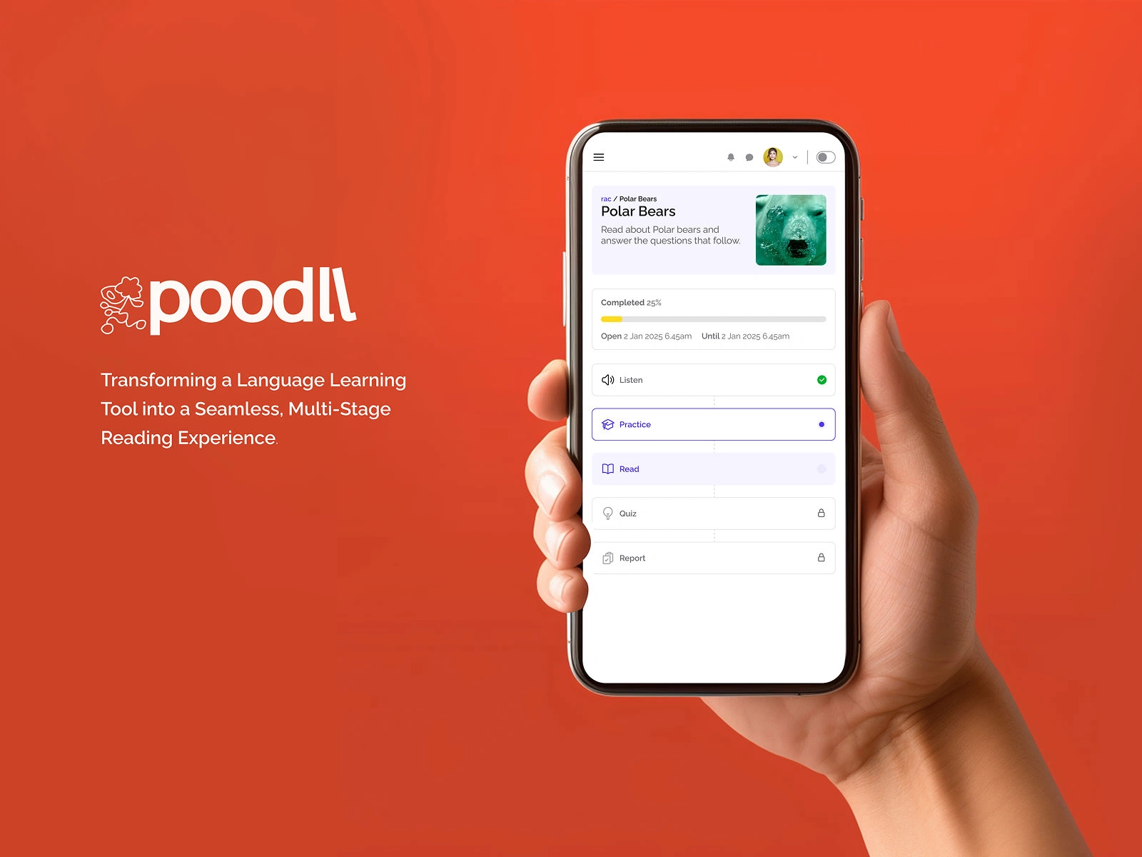 Poodll ReadAloud is a Moodle-based language learning tool designed to help students practise reading aloud. As the product evolved to include a new comprehension quiz and enforced step-by-step progression, the existing interface no longer clearly supported the experience. The challenge was to redesign the UI to better guide students through each stage, improve clarity and usability, and create a more polished, cohesive experience that fits seamlessly within Moodle.