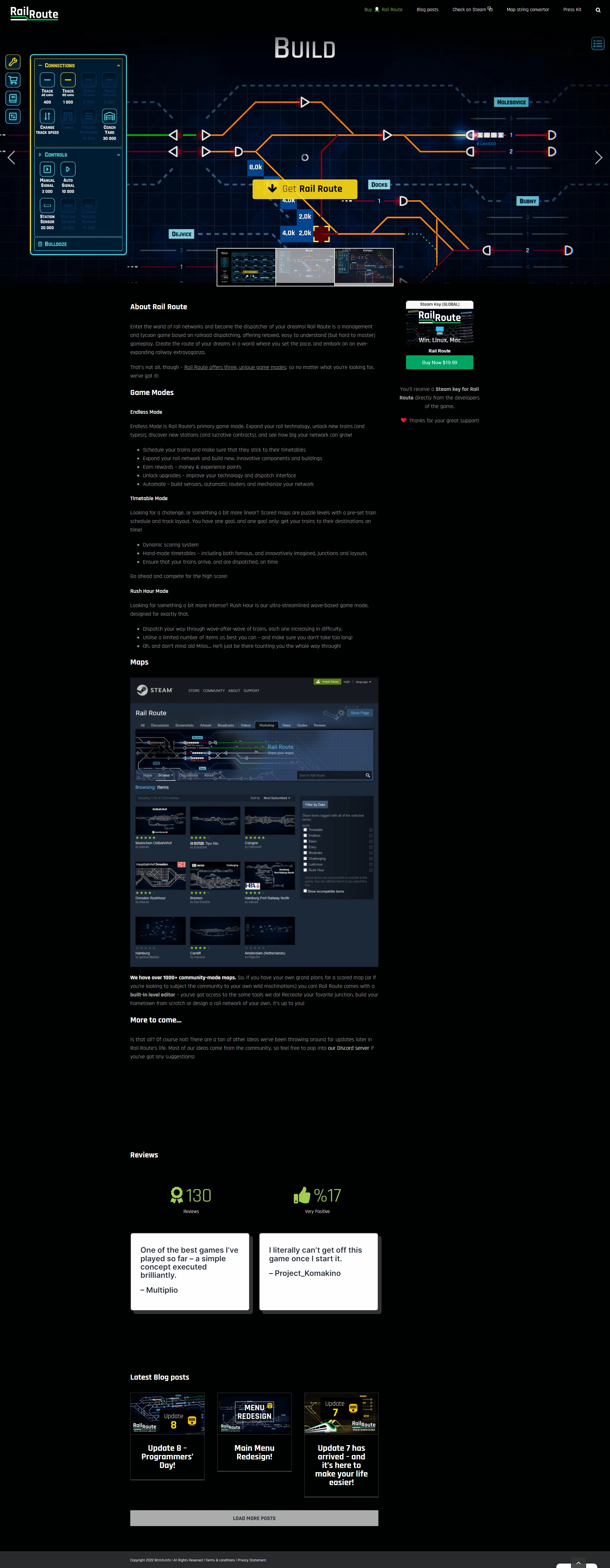 A website landing page redesign done for the independent game studio Bitrich for their game Rail Route