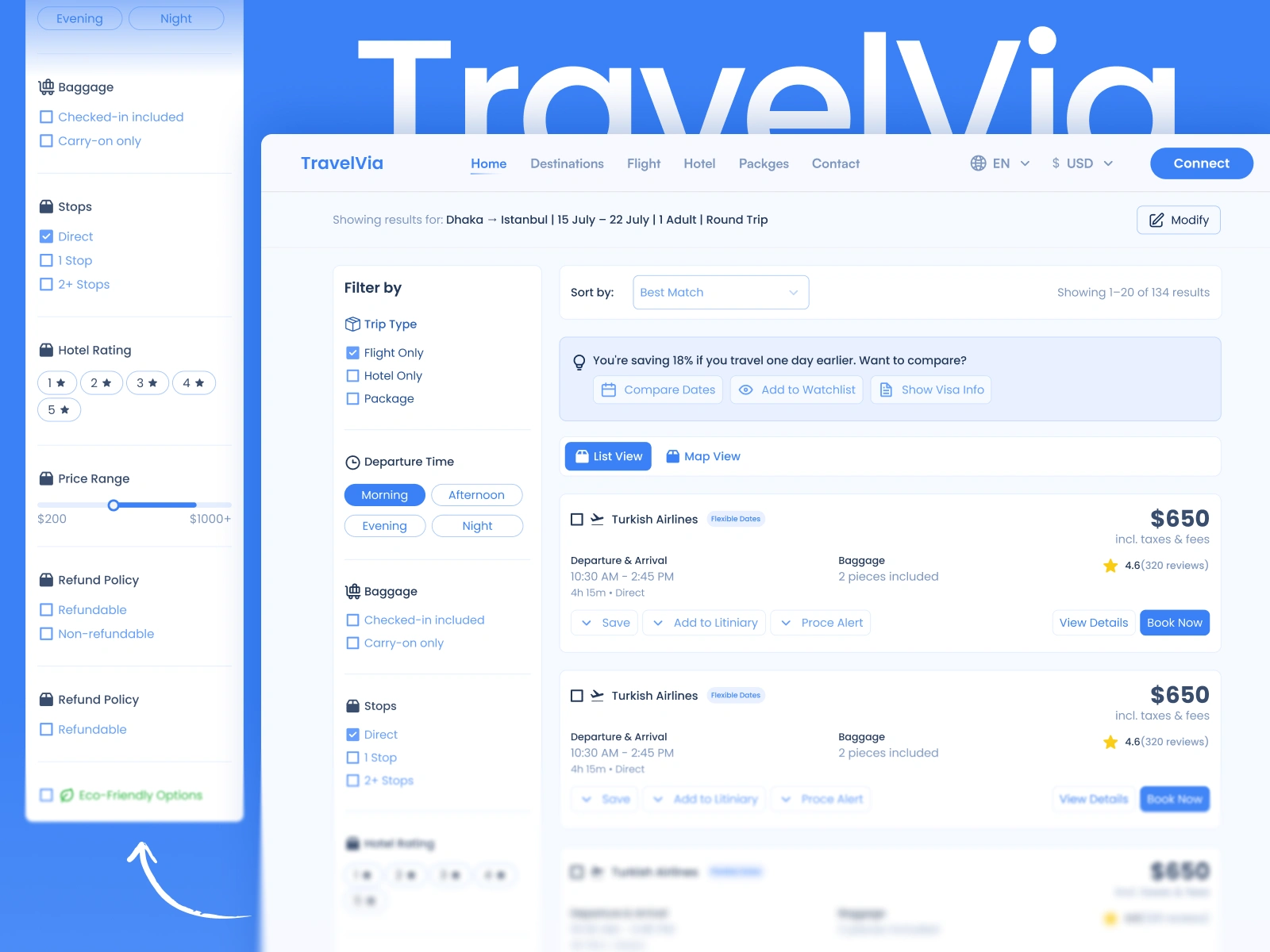 a travel booking platform for clarity, trust, and conversion optimized search, booking details, and payment flow for seamless user experience.