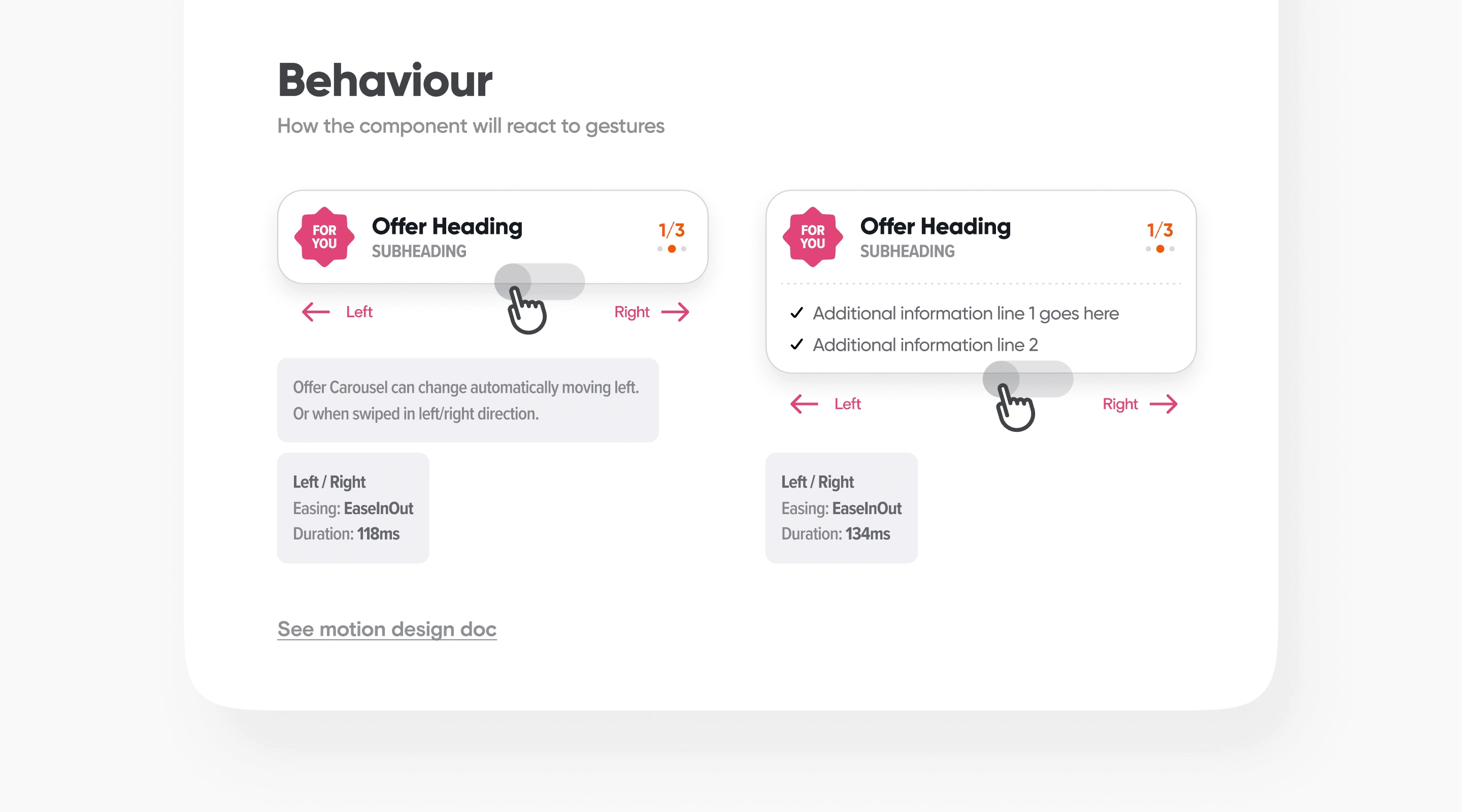 During this time, we were revamping our entire consumer app. We started to document and systematise components in both design and code. This was our chance to include Motion to the core of the design system.
