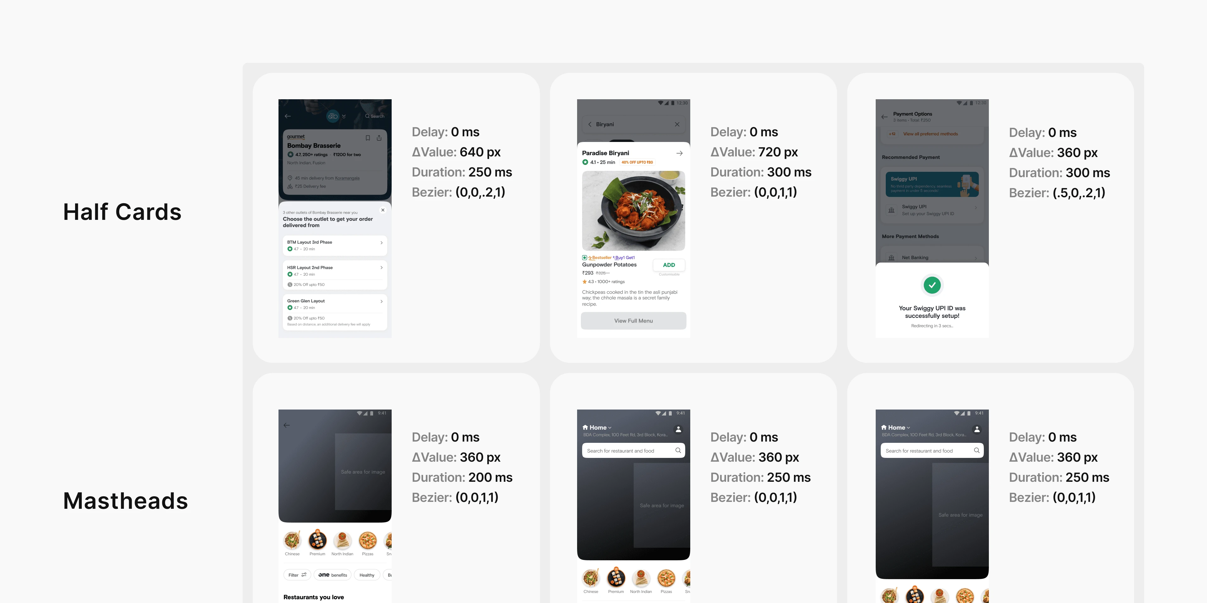Developed a motion design system for Swiggy's consumer app to enhance UI consistency and efficiency.